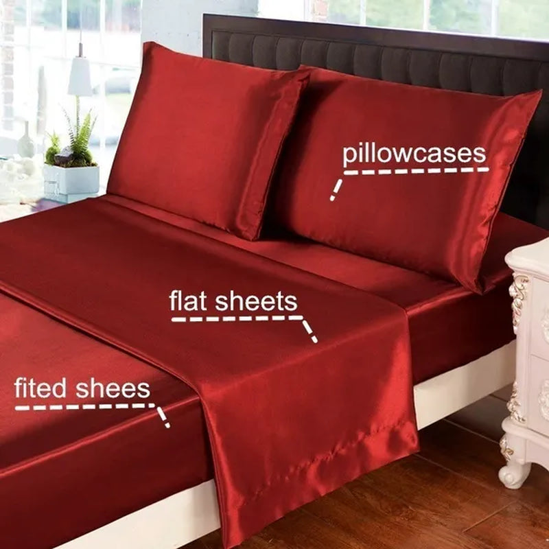 1/3/4 Pcs Silk Bedding Set Luxury Baby Twin Full Queen King Size Bed Sheets Set Satin Bed Sheets and Pillowcases Bedclothes Flat Fitted Sheets