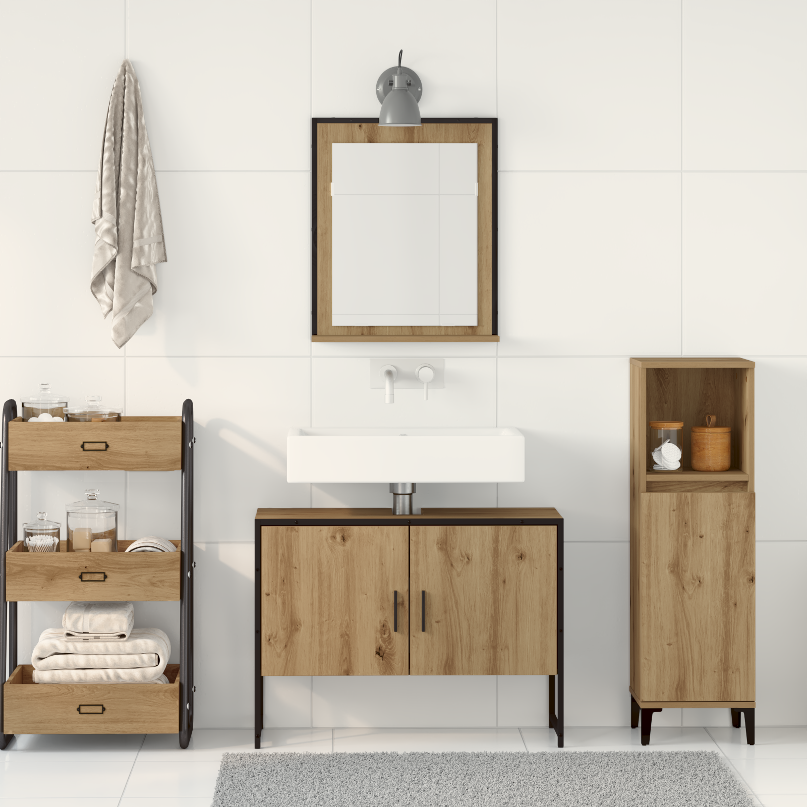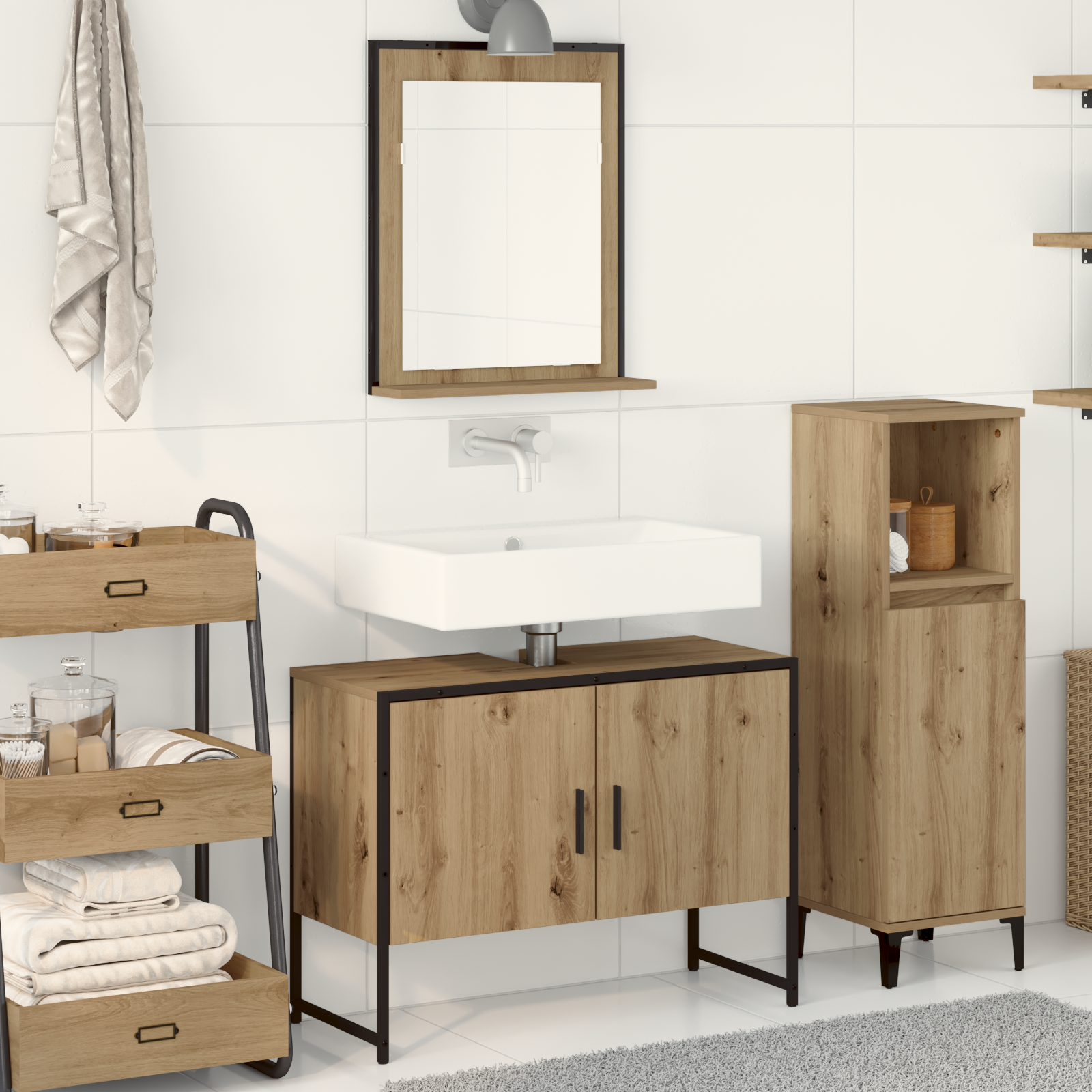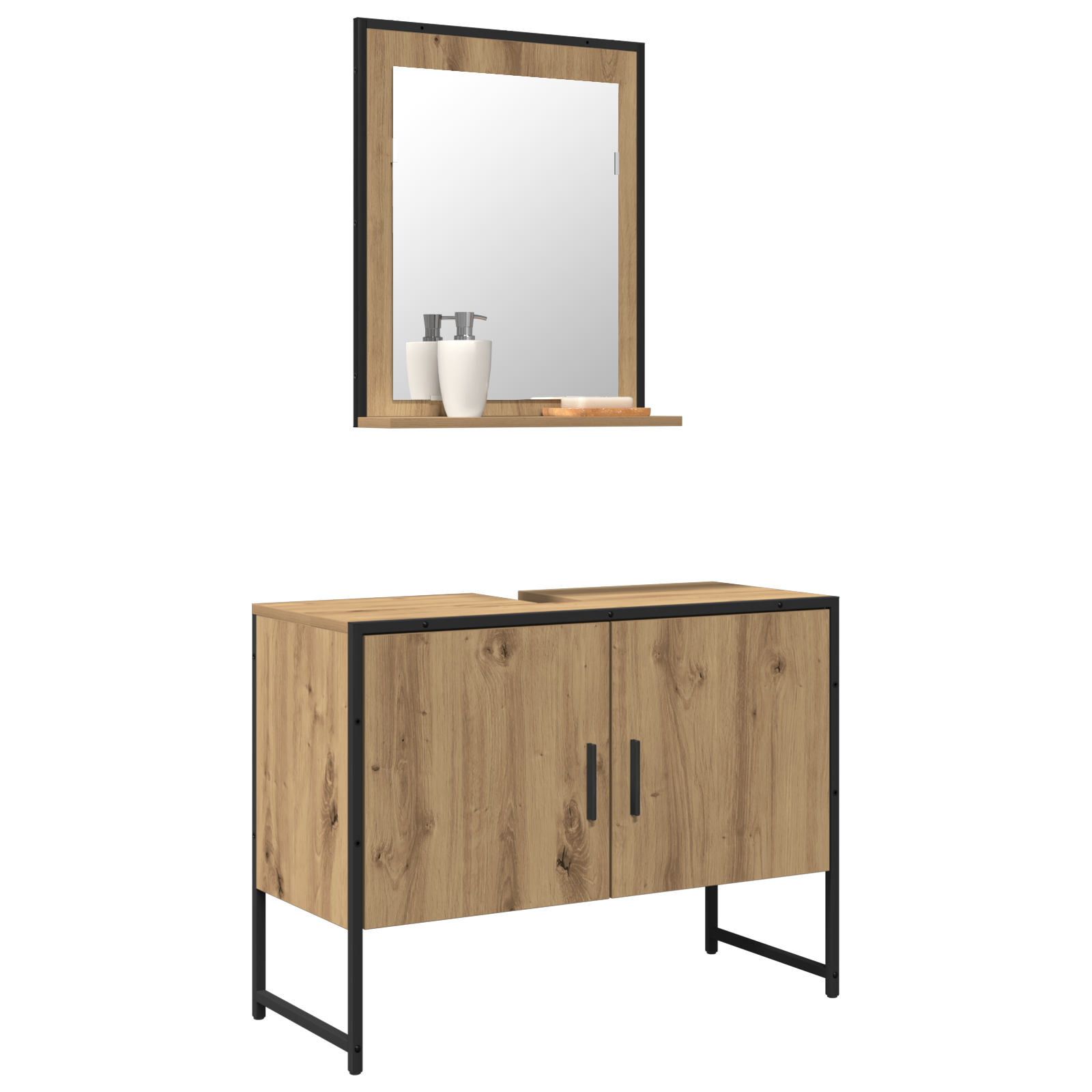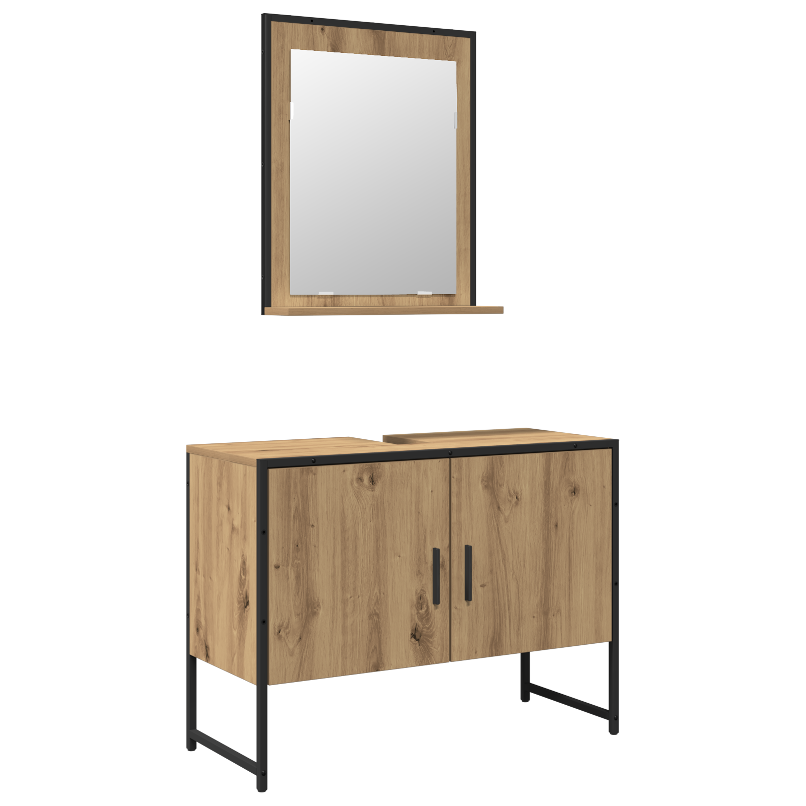 2-delt baderomsmøbelsett i kunstnerisk eik, konstruert treverk
