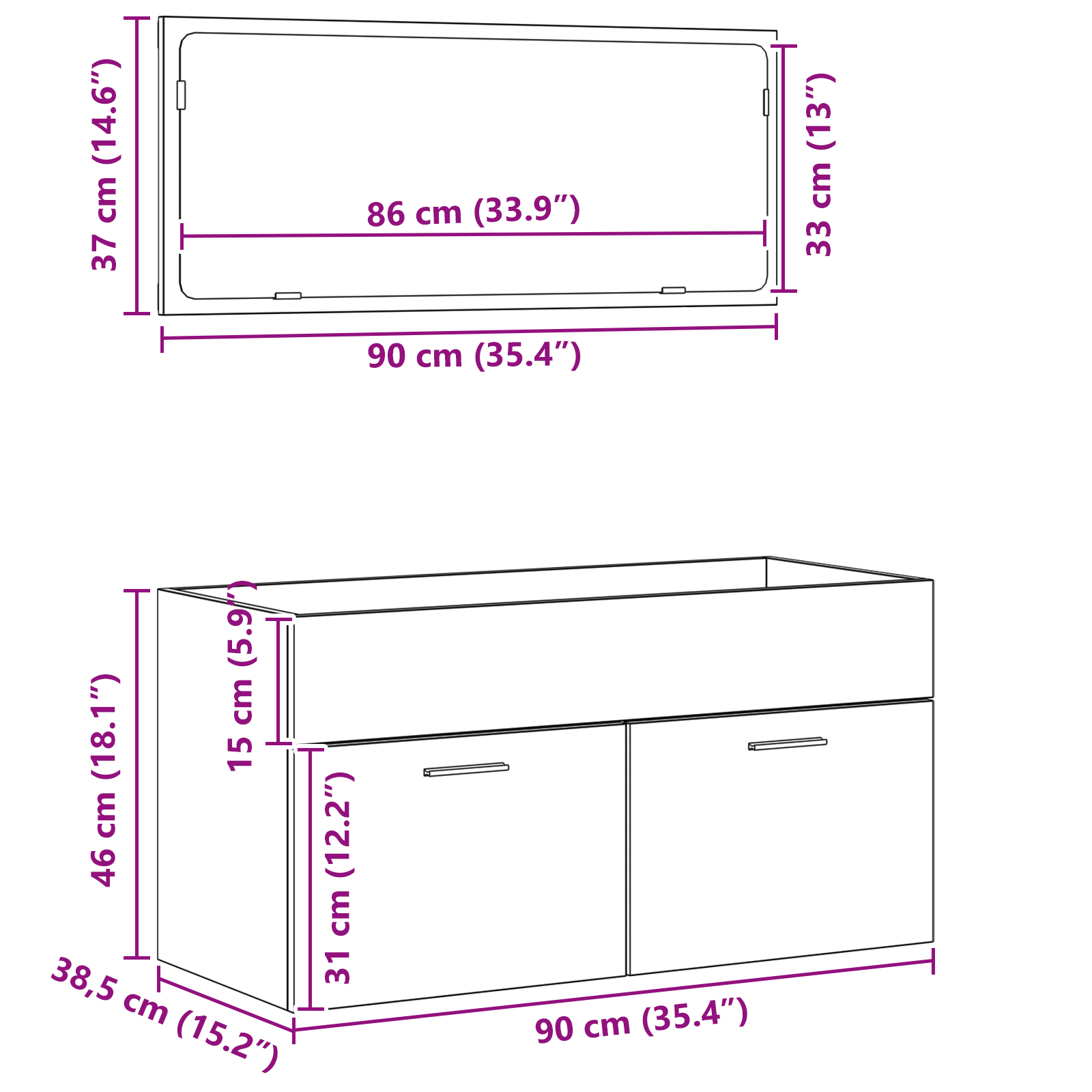- Stilig design: Den moderne svart eikefinishen gir et sofistikert utseende som passer til all baderomsinnredning, mens de polerte rustfrie stål-håndtakene tilfører en ekstra touch av stil.