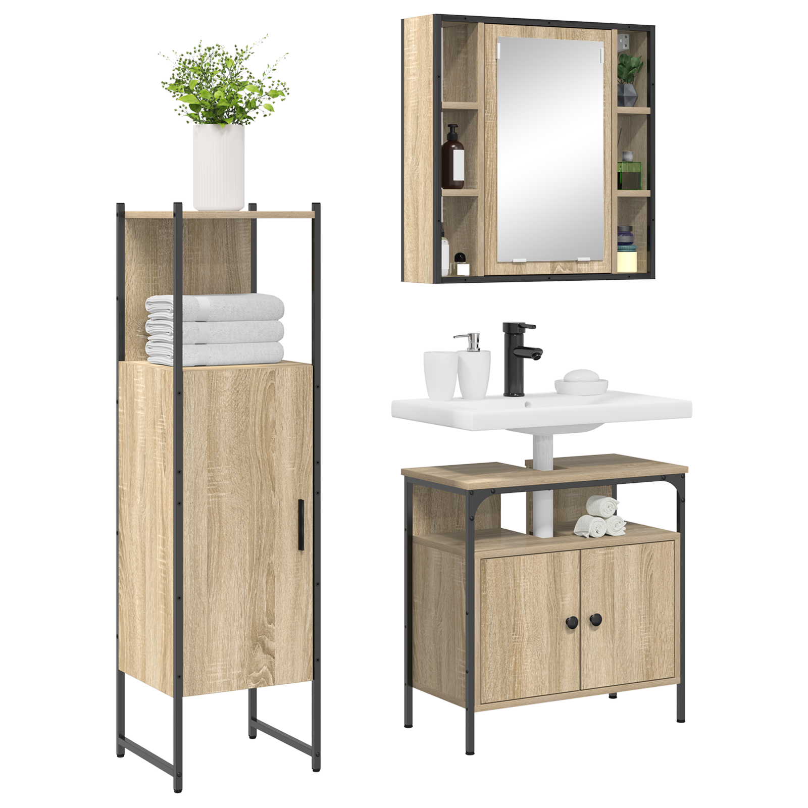3-delt baderomsmøbelsett Sonoma eik sponplate