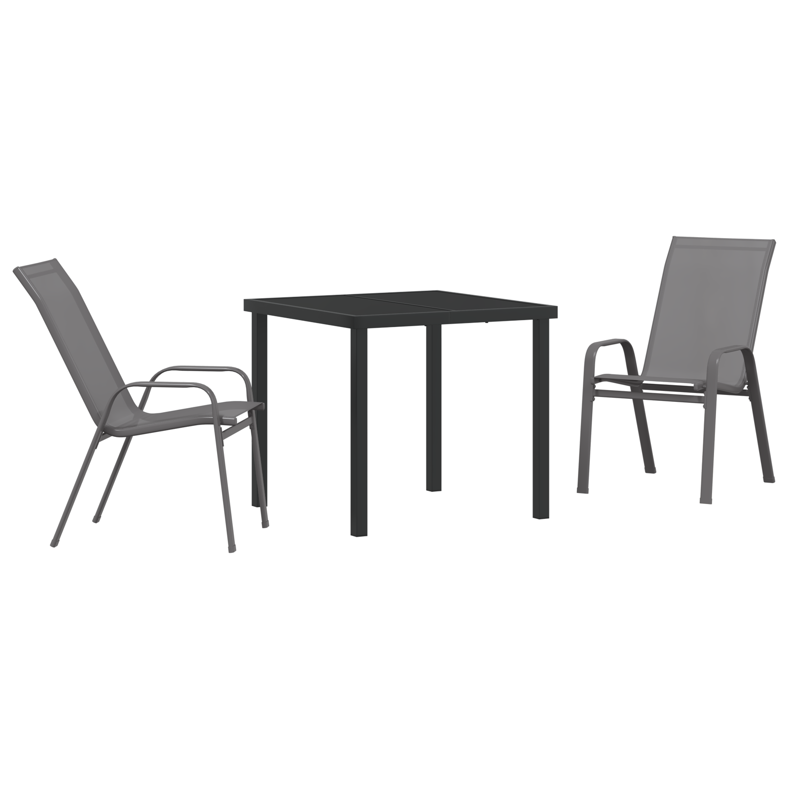 Dette 3-delte hage dining settet handler om stilig utendørsliv, hvor stil møter funksjonalitet. Den moderne grå stål-designen hever atmosfæren i hvilket som helst utendørsområde, samtidig som den gir komfortable seter for måltider, avslapning eller bare for å nyte frisk luft.
