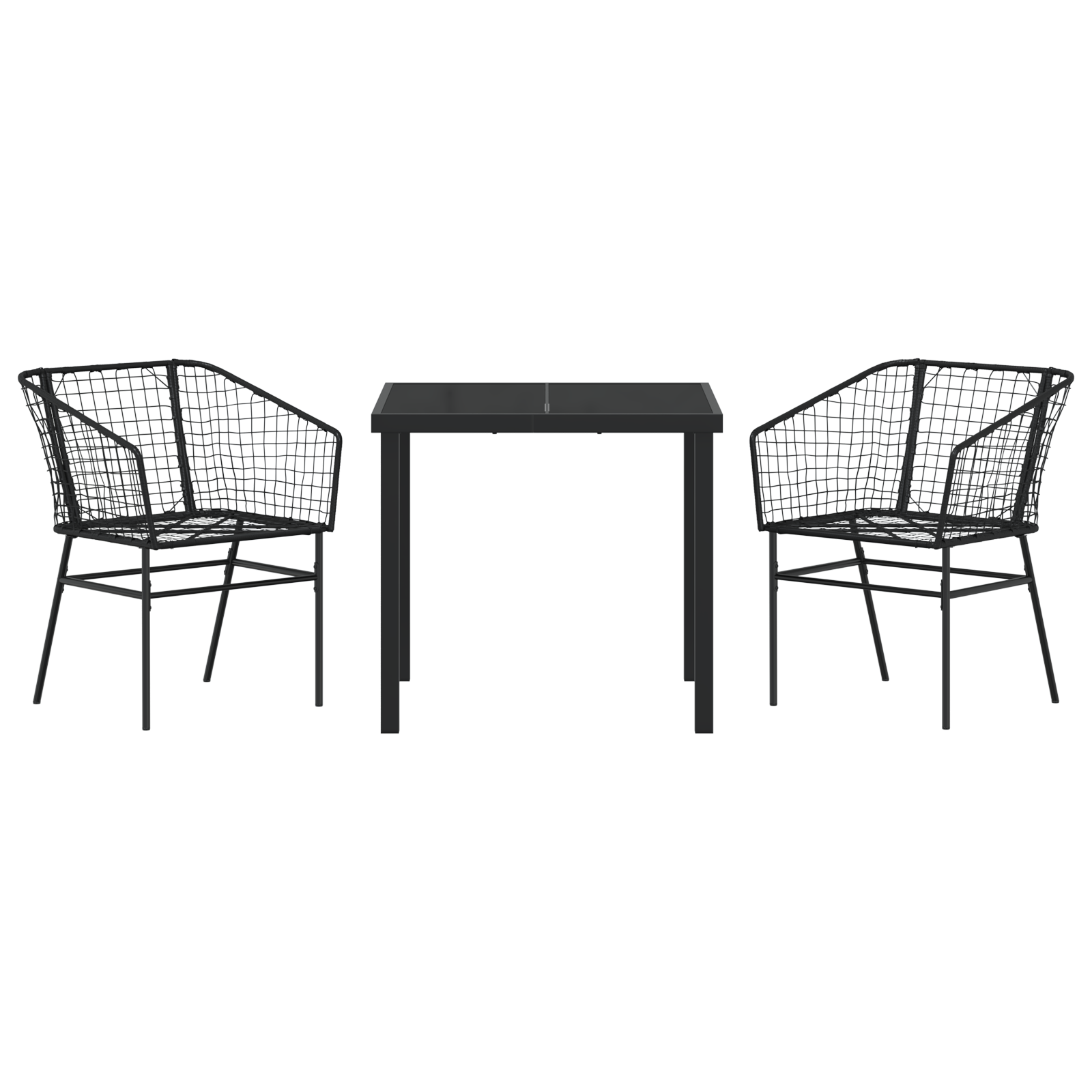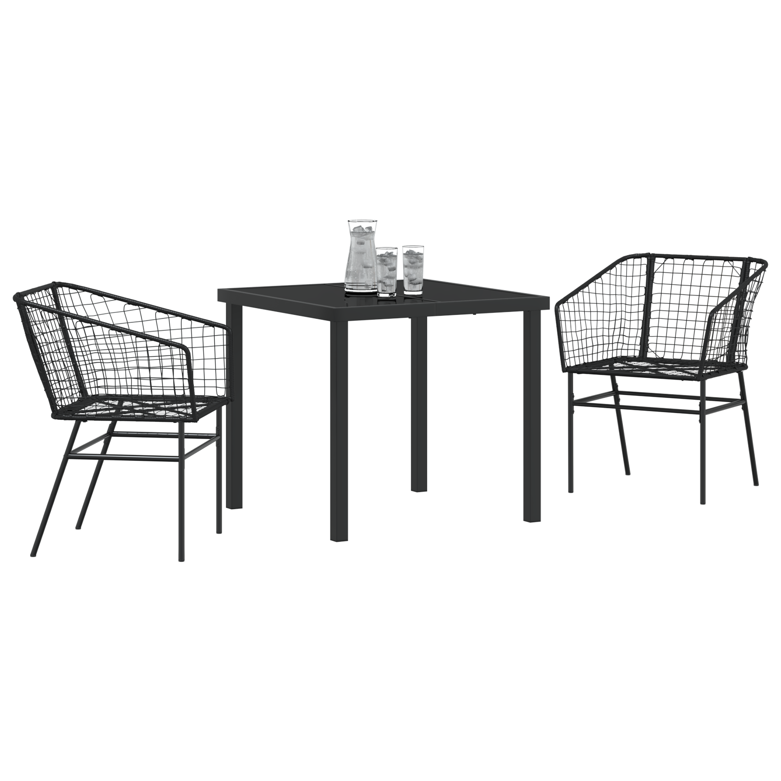 Dette hagemøbelsettet har en stilren svart polyrottingdesign som ser bra ut, er komfortabel, og robust. Det passer perfekt til terrasser, uteplasser og balkonger, gir et moderne preg til måltidene dine. I tillegg, de er lette som en fjær, så du kan enkelt flytte dem rundt for å tilpasse plasseringen.