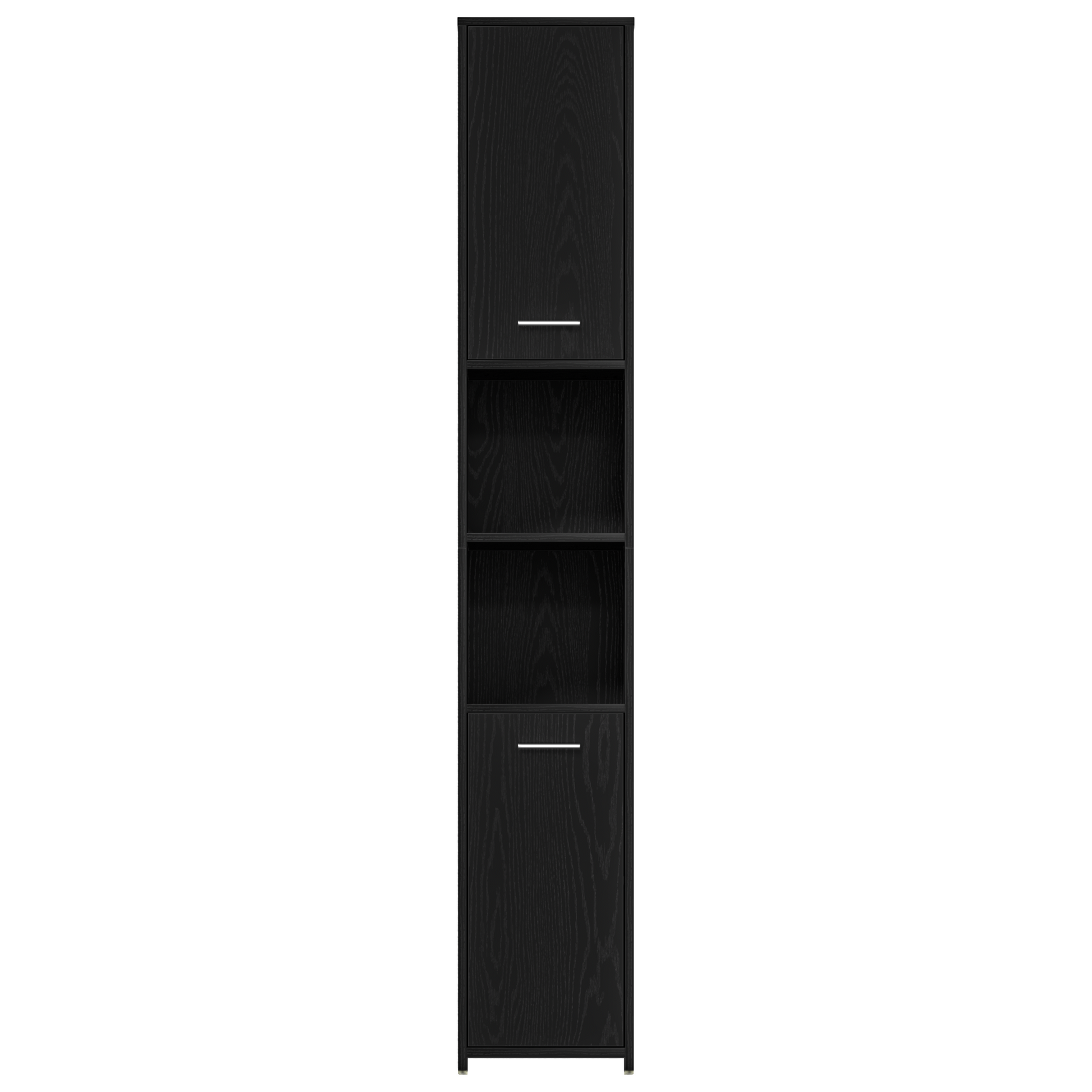 Oppgrader baderommet ditt med vidaXL 4-delt baderomsmøbelsett, laget av glatt svart eik konstruert tre. Dette smarte og stilige settet kombinerer holdbarhet og moderne utseende.