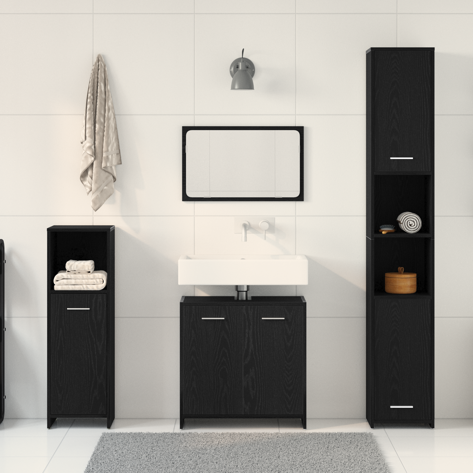 Gi baderommet ditt et løft med dette trendy og praktiske vidaXL 4-delte baderomsmøbelsettet i svart eik. Det blander skjønnhet med nytte og hjelper deg å utnytte plassen din best mulig.