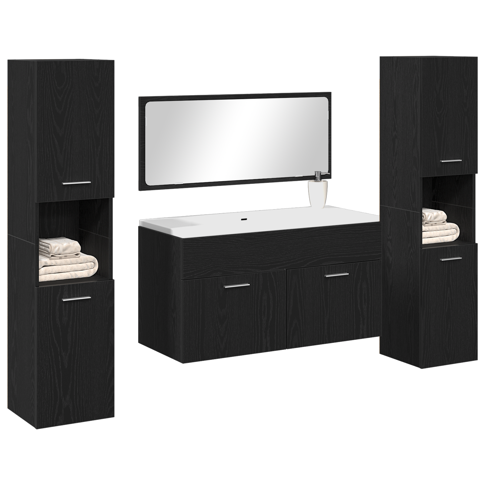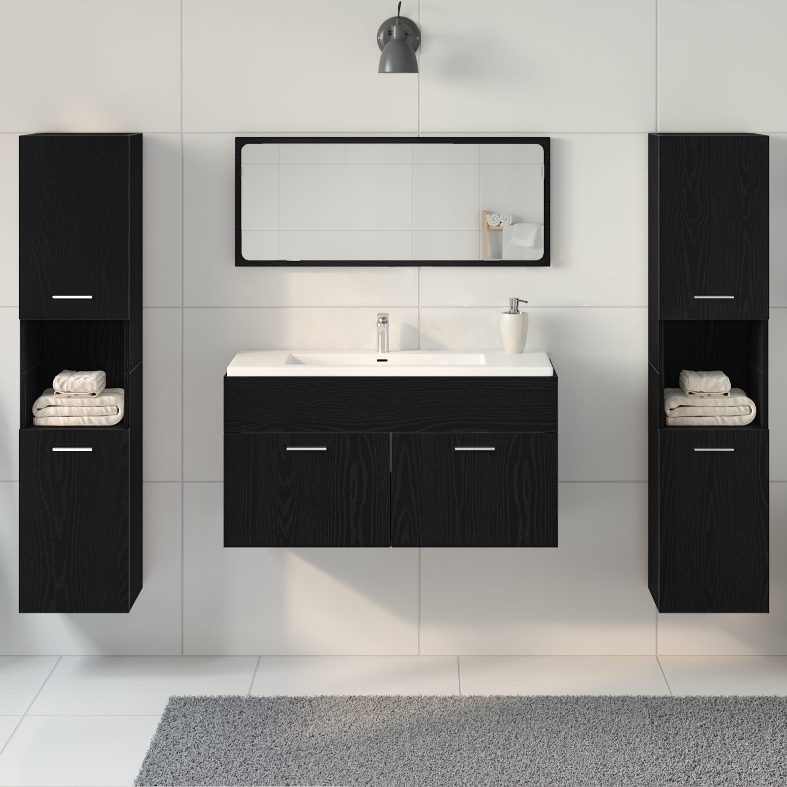 4-Delt Badmøbelsett Svart Eik Konstruert Tre
