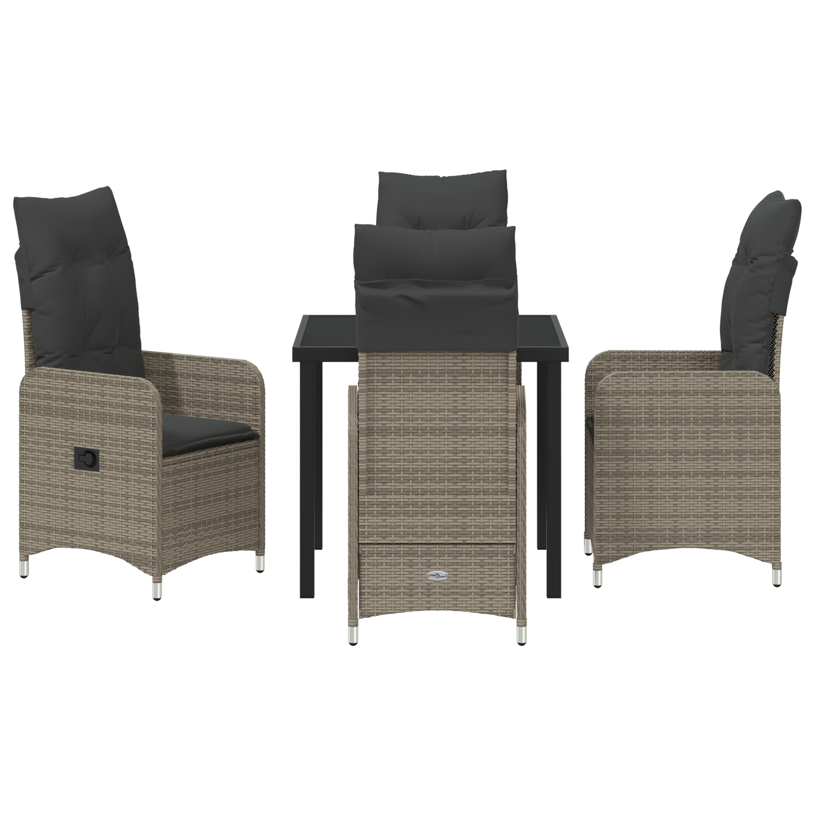 5 Delt Hage Spisesett med Puter Grå Poly Rattan