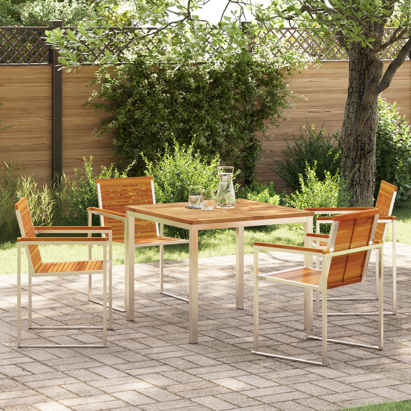 - Holdbare Materialer: Laget av solid akasietre og en sterk rustfritt stålramme, dette spisebordsettet er bygget for å vare, samtidig som det gir pålitelighet.