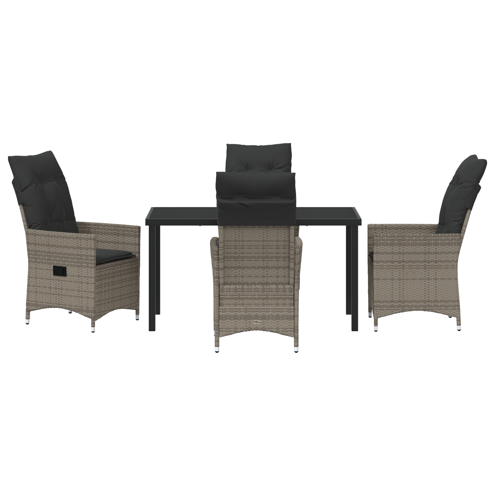 vidaXL Reclining Garden Chairs er et supert valg for uteplassen din, med stil og komfort. Laget av solid grå poly rattan og en sterk svart pulverlakkert stålramme, er disse stolene perfekte for å slappe av, enten på terrassen, balkongen eller verandaen.