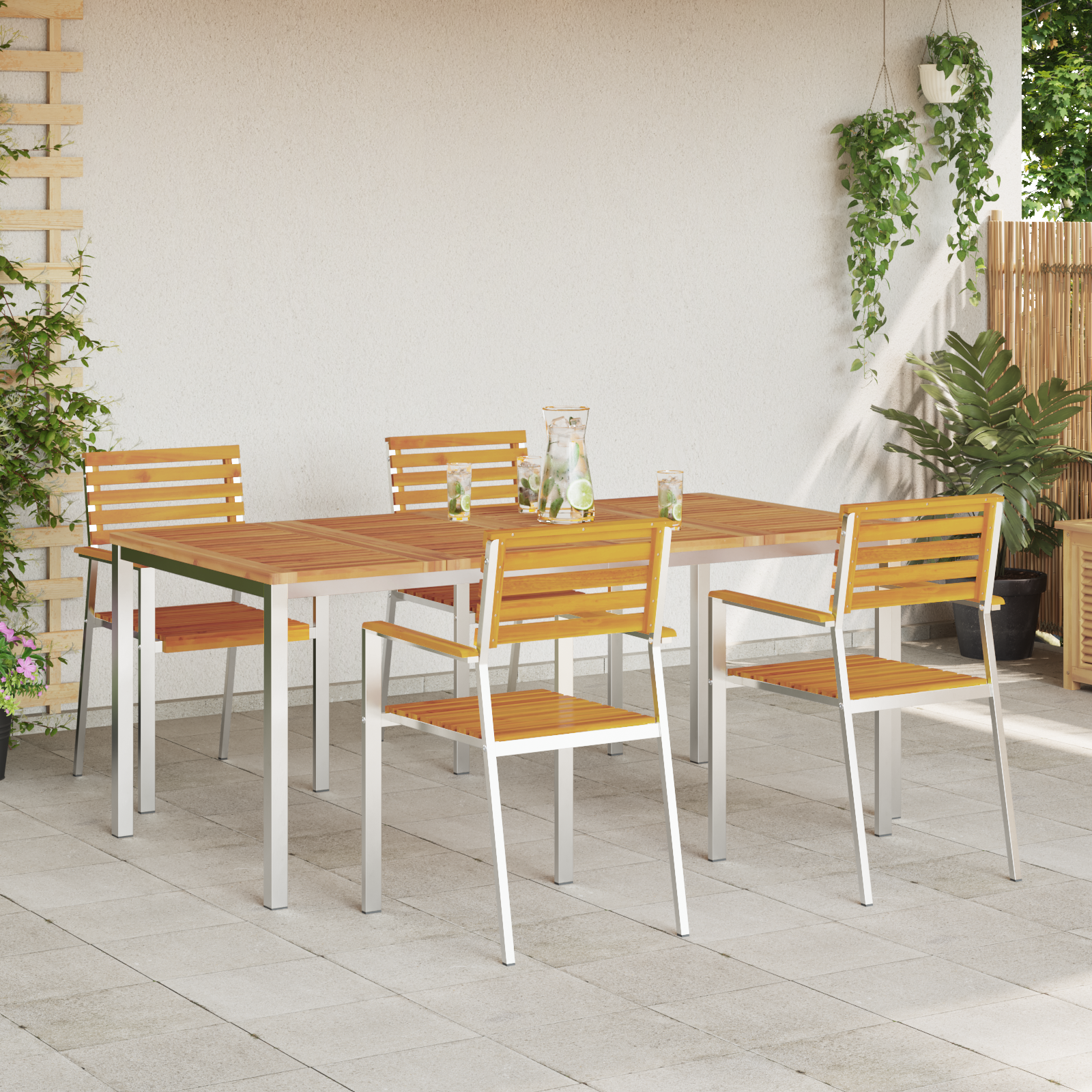 - Holdbarhet: Dette produktet er laget av massivt akasietre og en rustfritt stålramme, som gjør det værbestandig og laget for langvarig bruk.