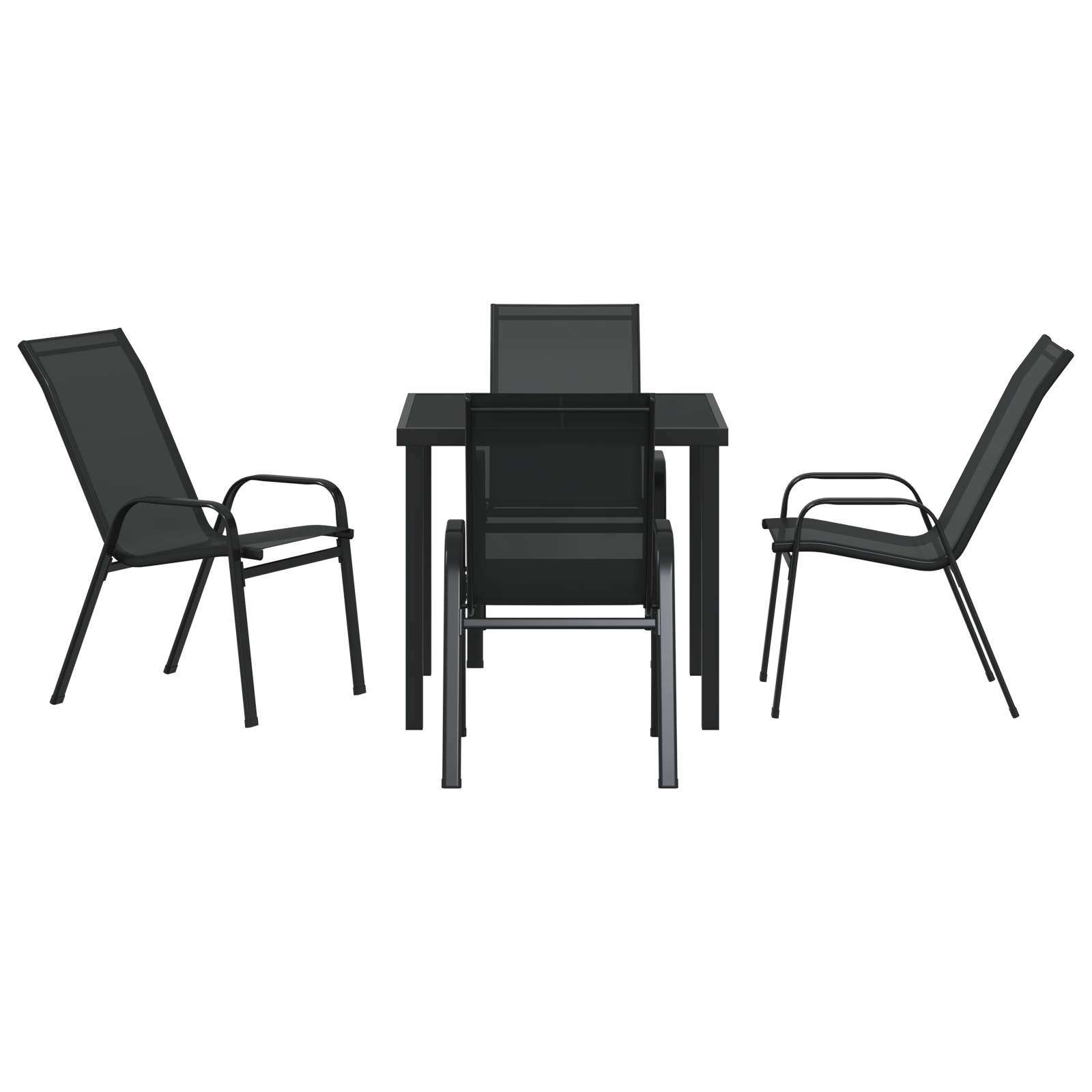 Denne 5-delte hage spisegruppen handler om fine utendørs opplevelser, der stil møter praktisk funksjon. Med sitt stilige design i svart stål, løfter den ethvert utendørsområde og gir deg god plass til å spise eller bare slappe av med venner og familie.
