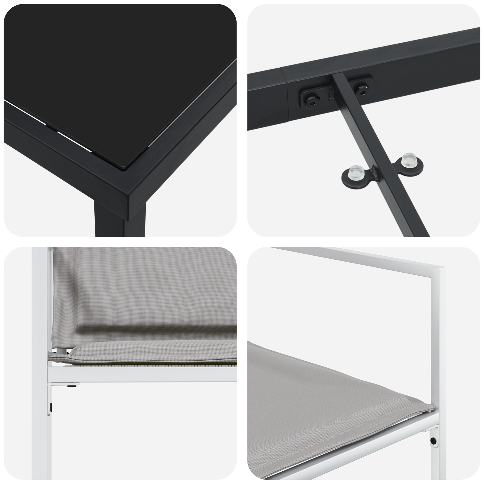 - Komfortfunksjoner: Hver stol har tykt polstrede puter i lysegrå polyester, som gir en super komfortabel sittestilling. Perfekt for late ettermiddager eller kveldmåltider, disse putene gir et velkomment preg til uteplassen din.