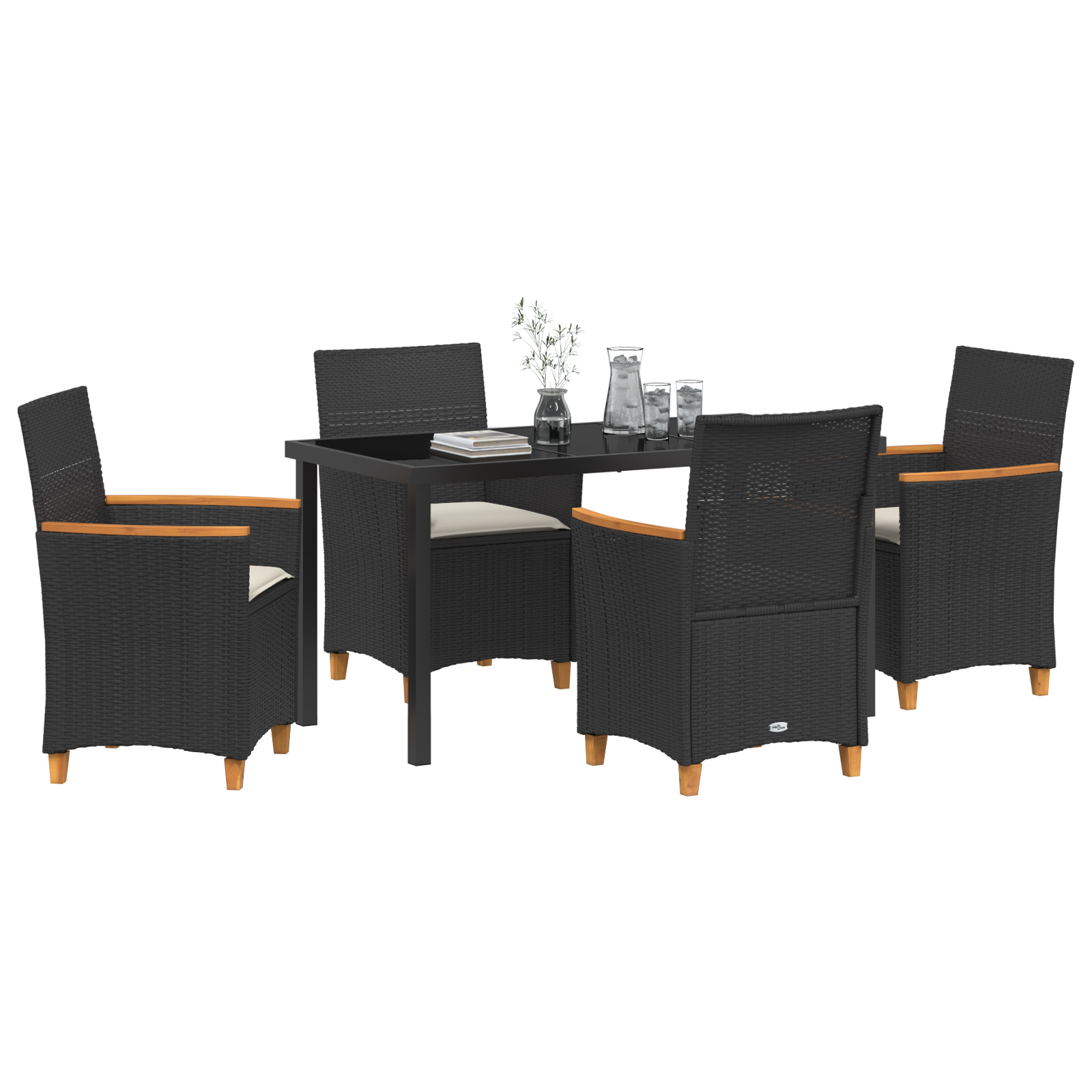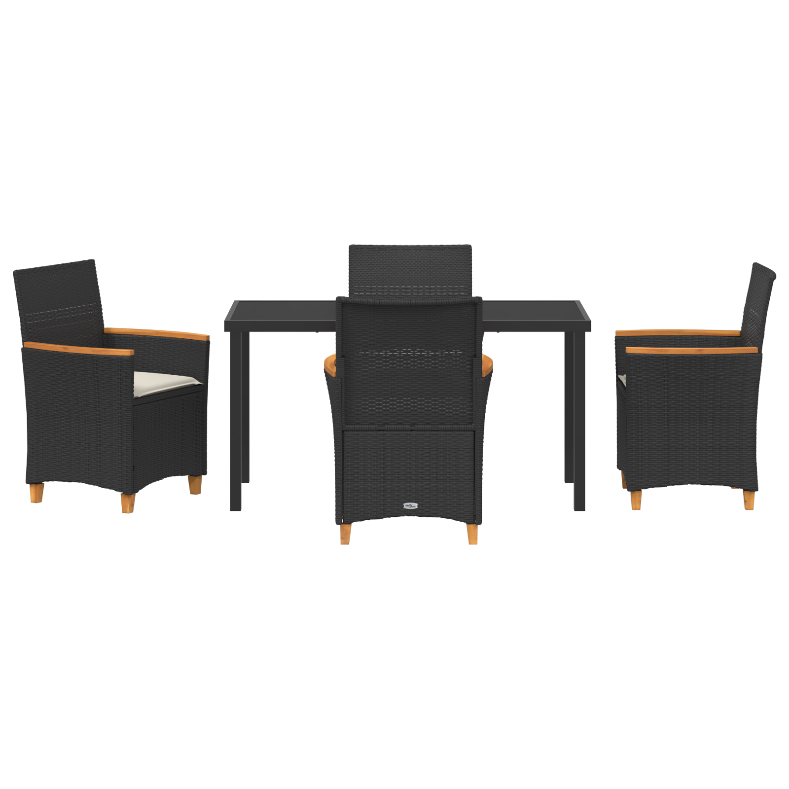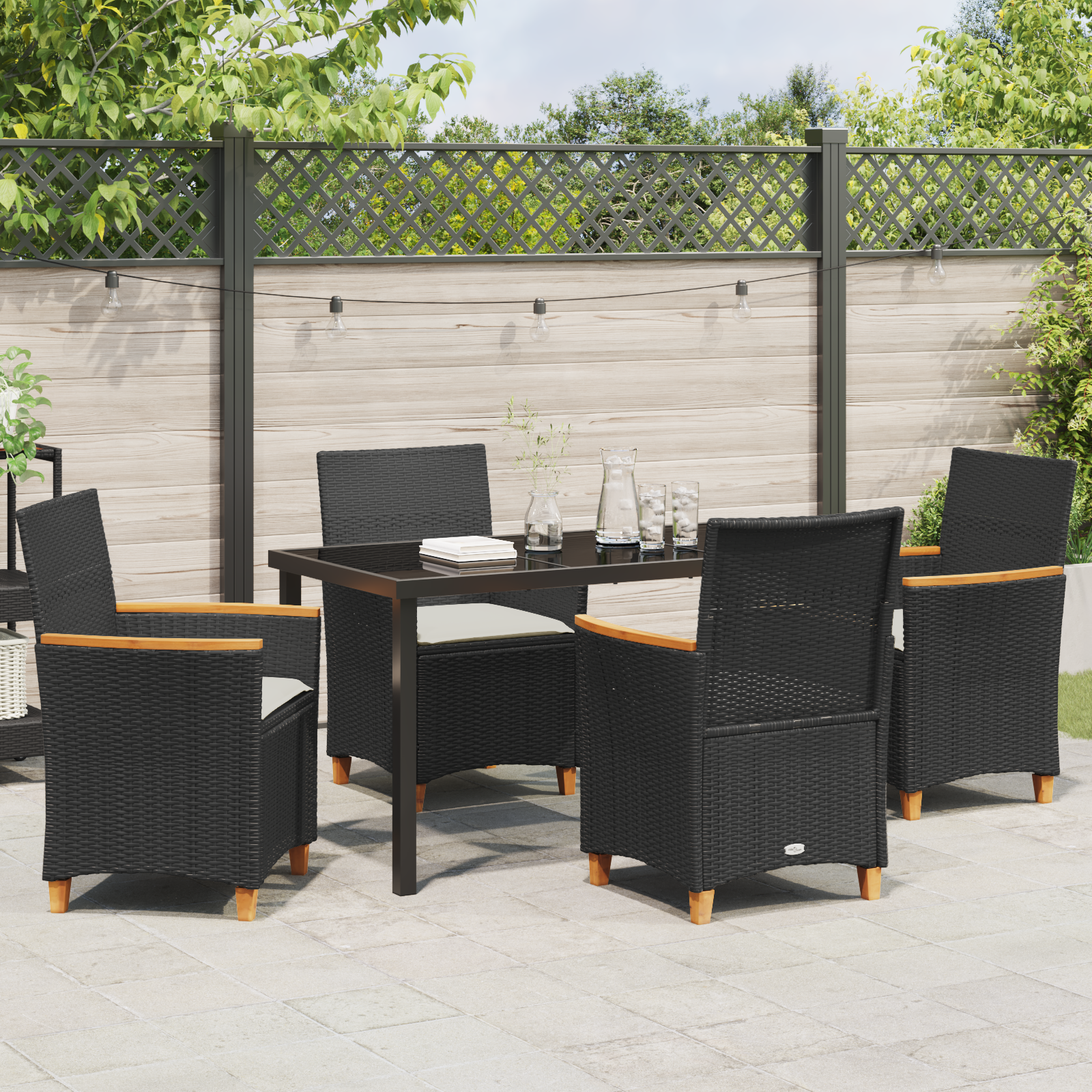 5-delt Hage Spisestue Set med Puter Svart Poly-rotang