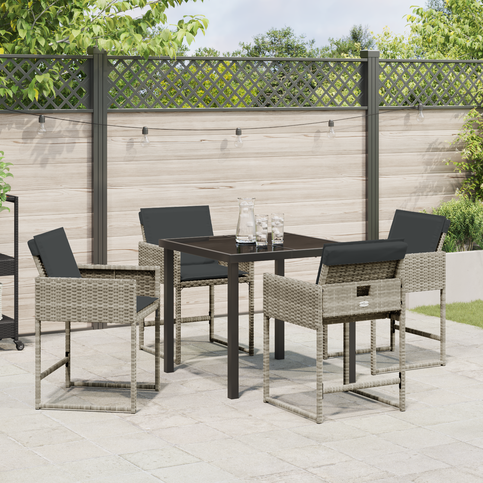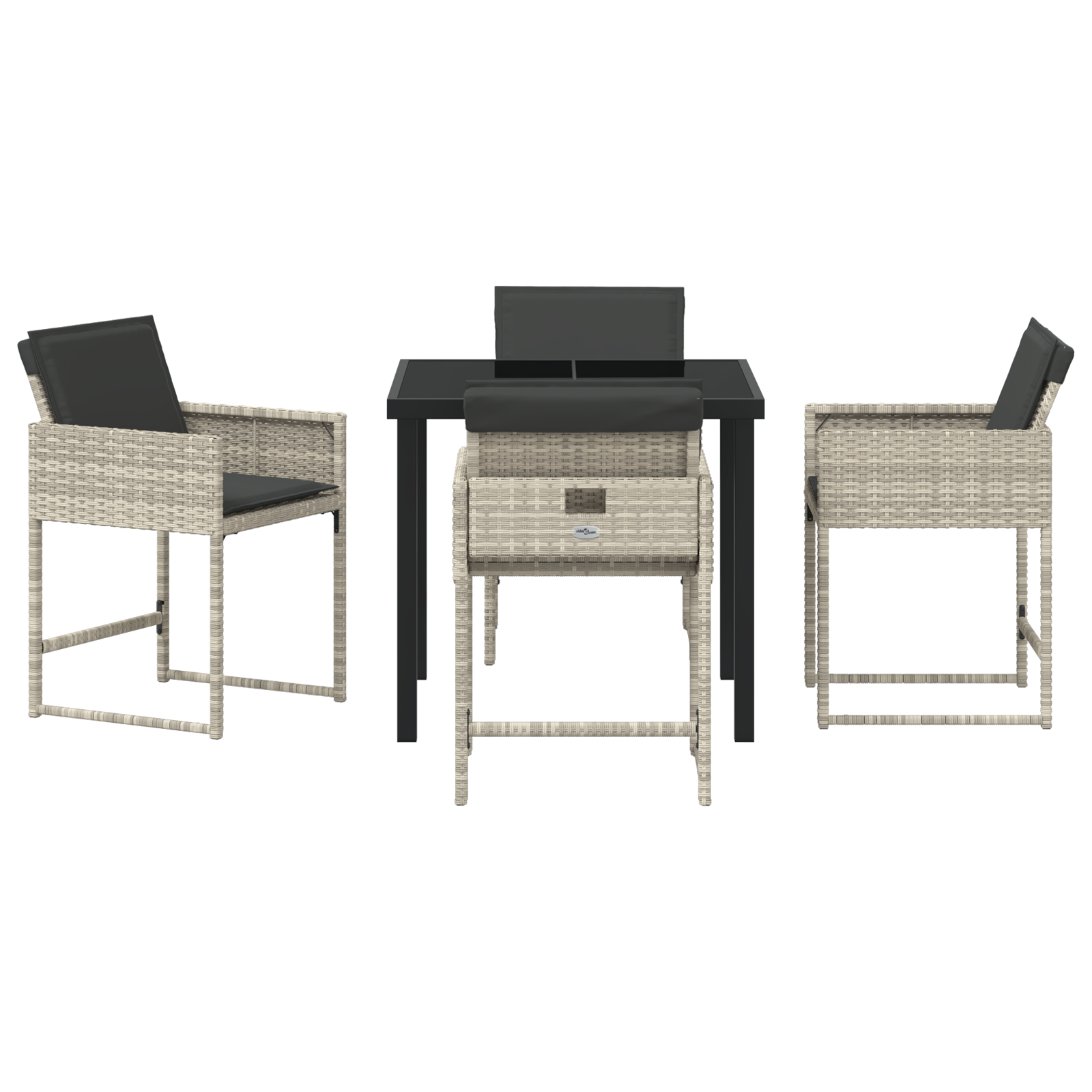 5 Delt Hagespisestolsett med Puter Lys Grå Poly Rattan