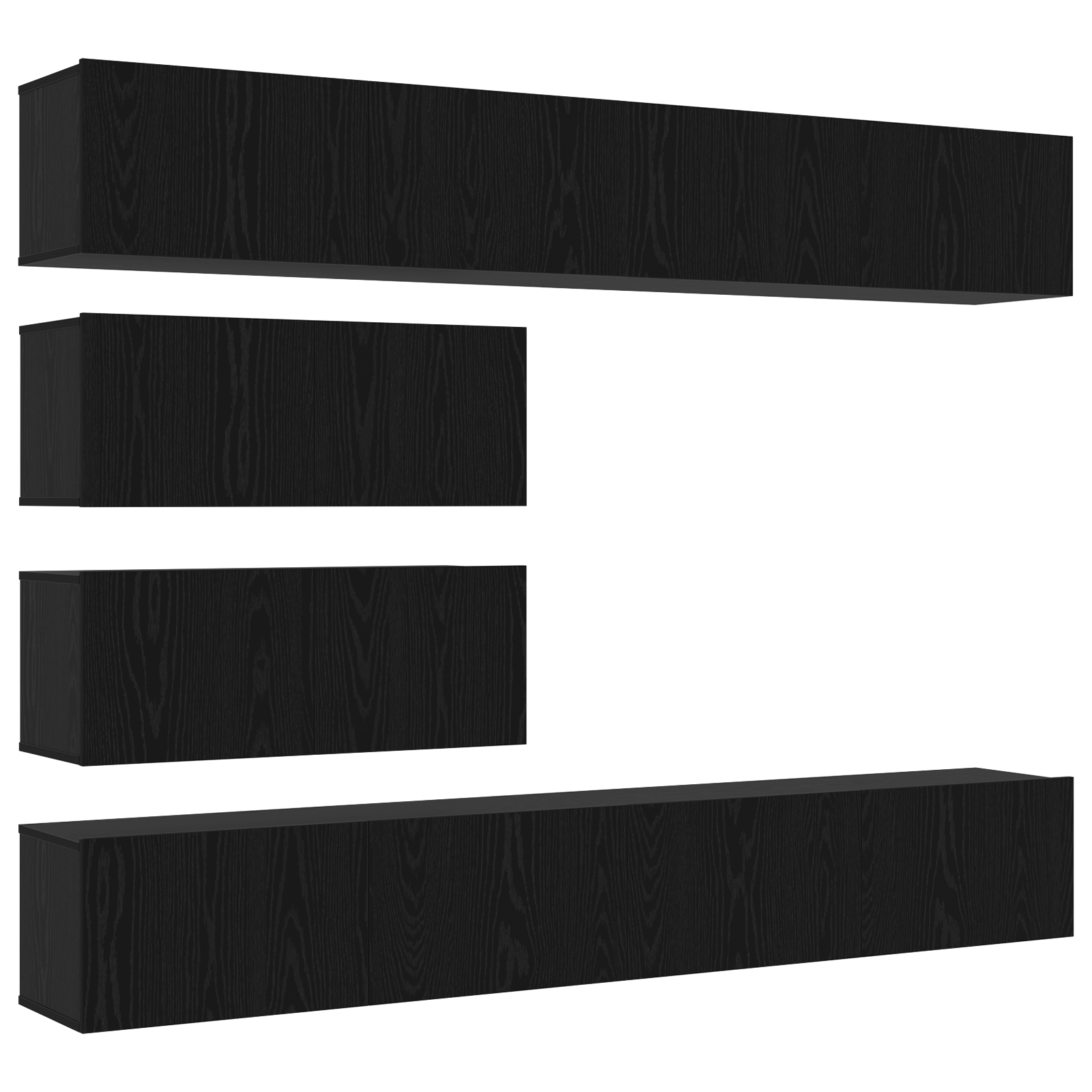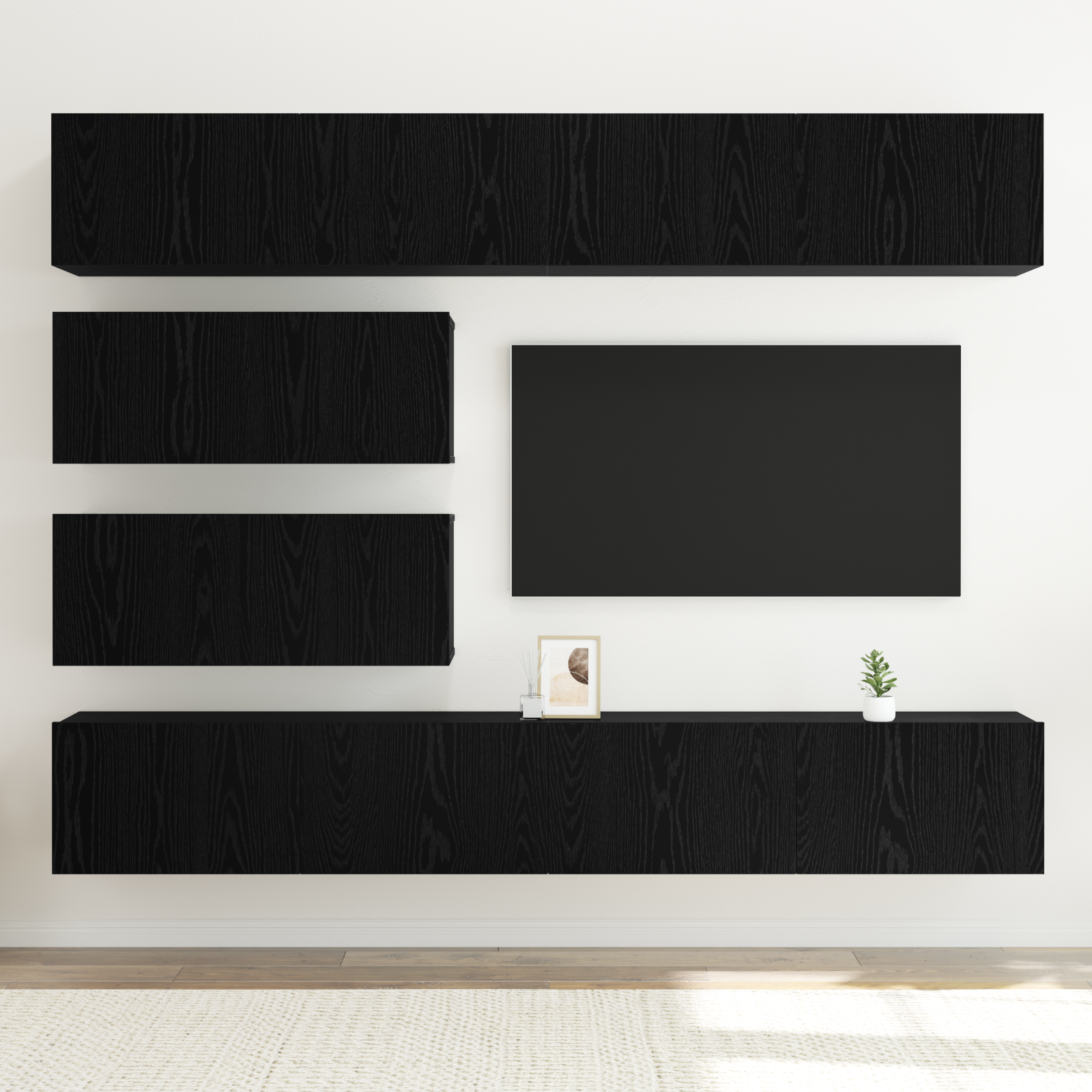 6-delt TV-skap sett veggmontert svart eik konstruert tre