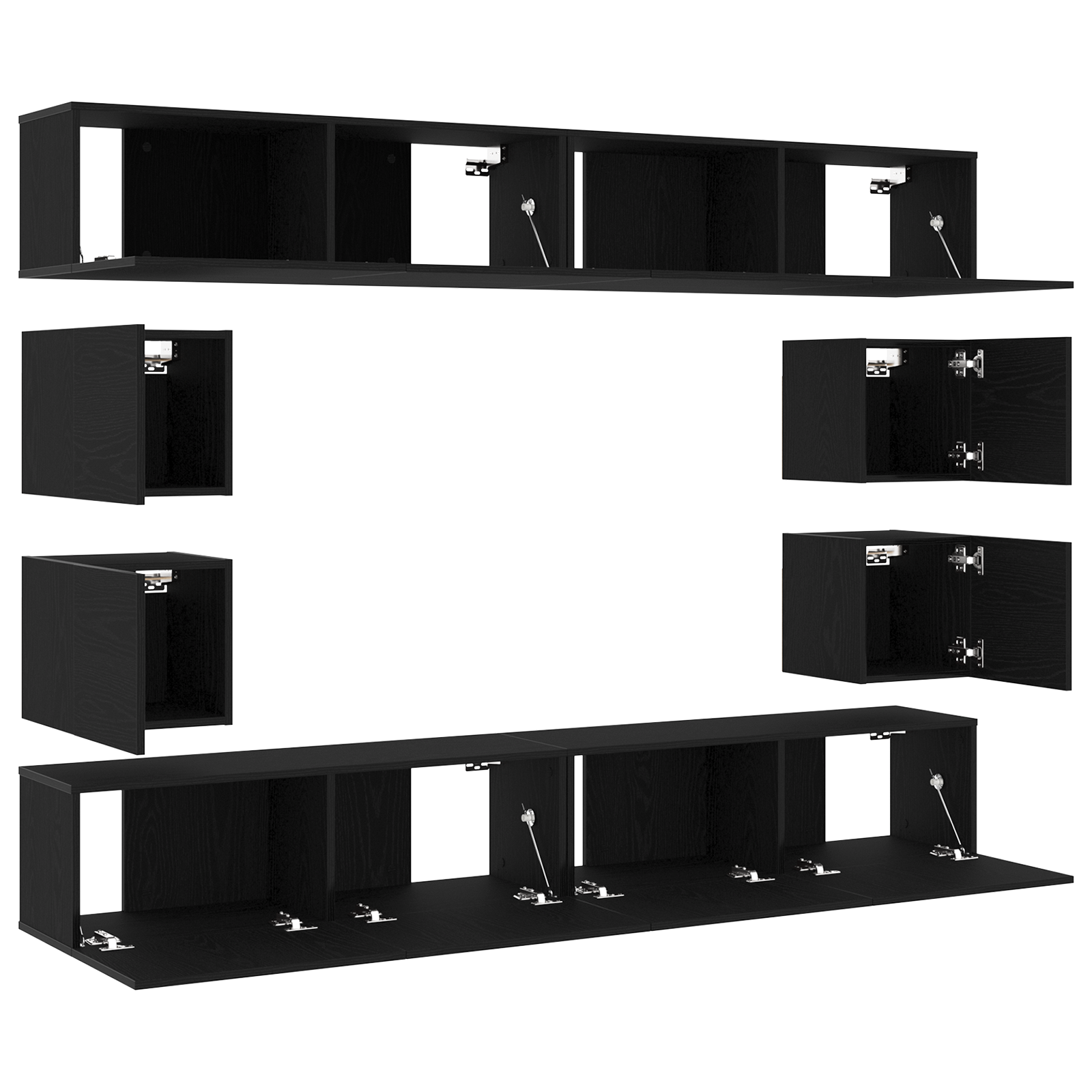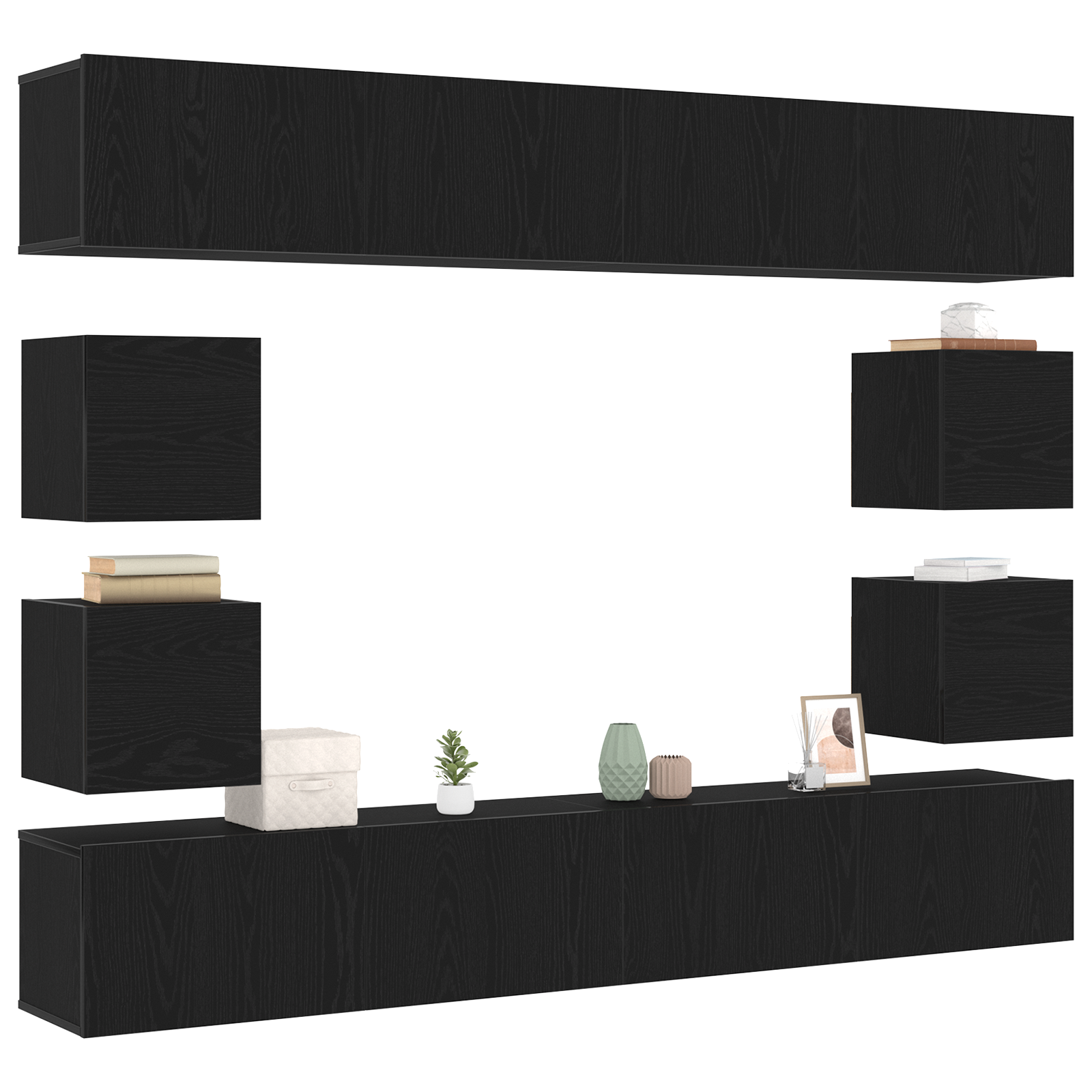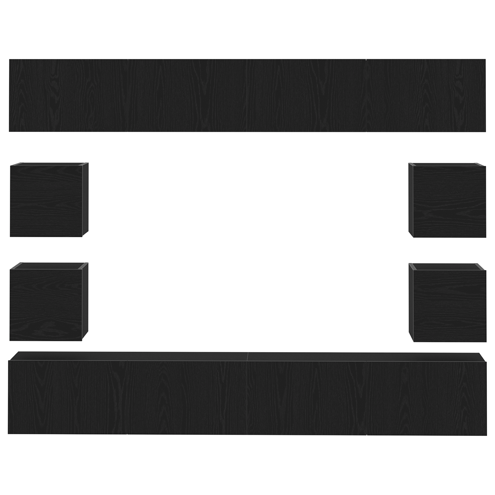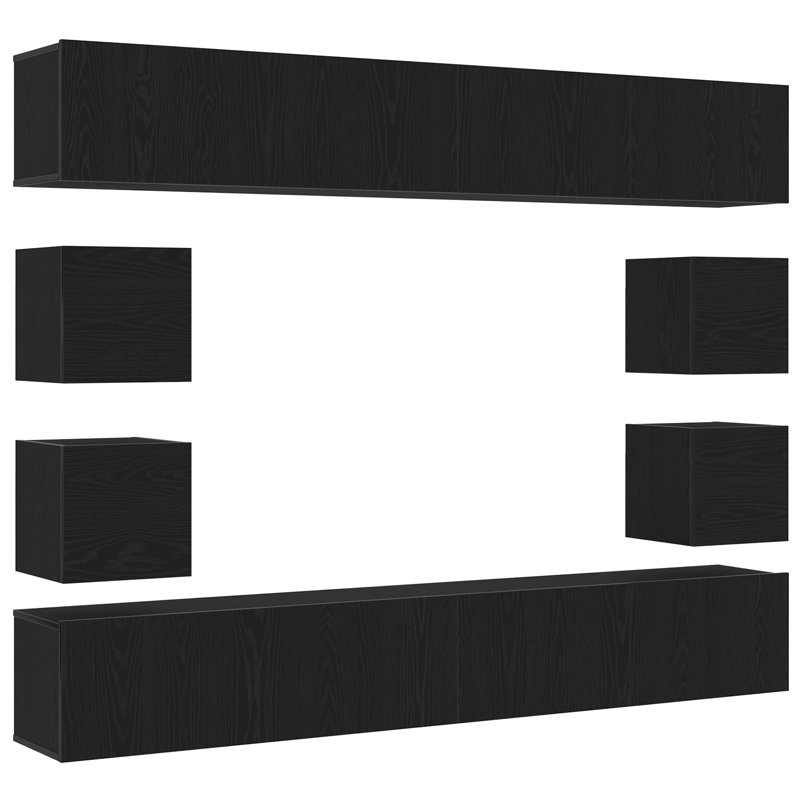 6-delt TV-skapsett - Veggmontert, svart eikeimitert tre