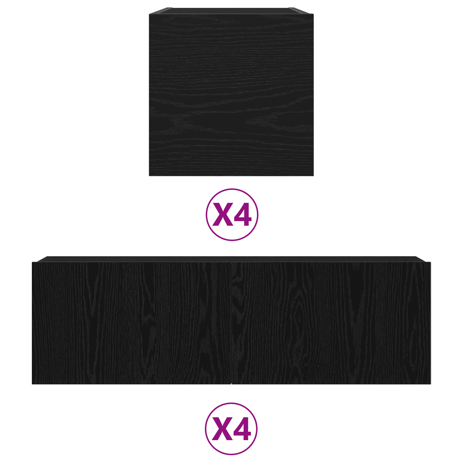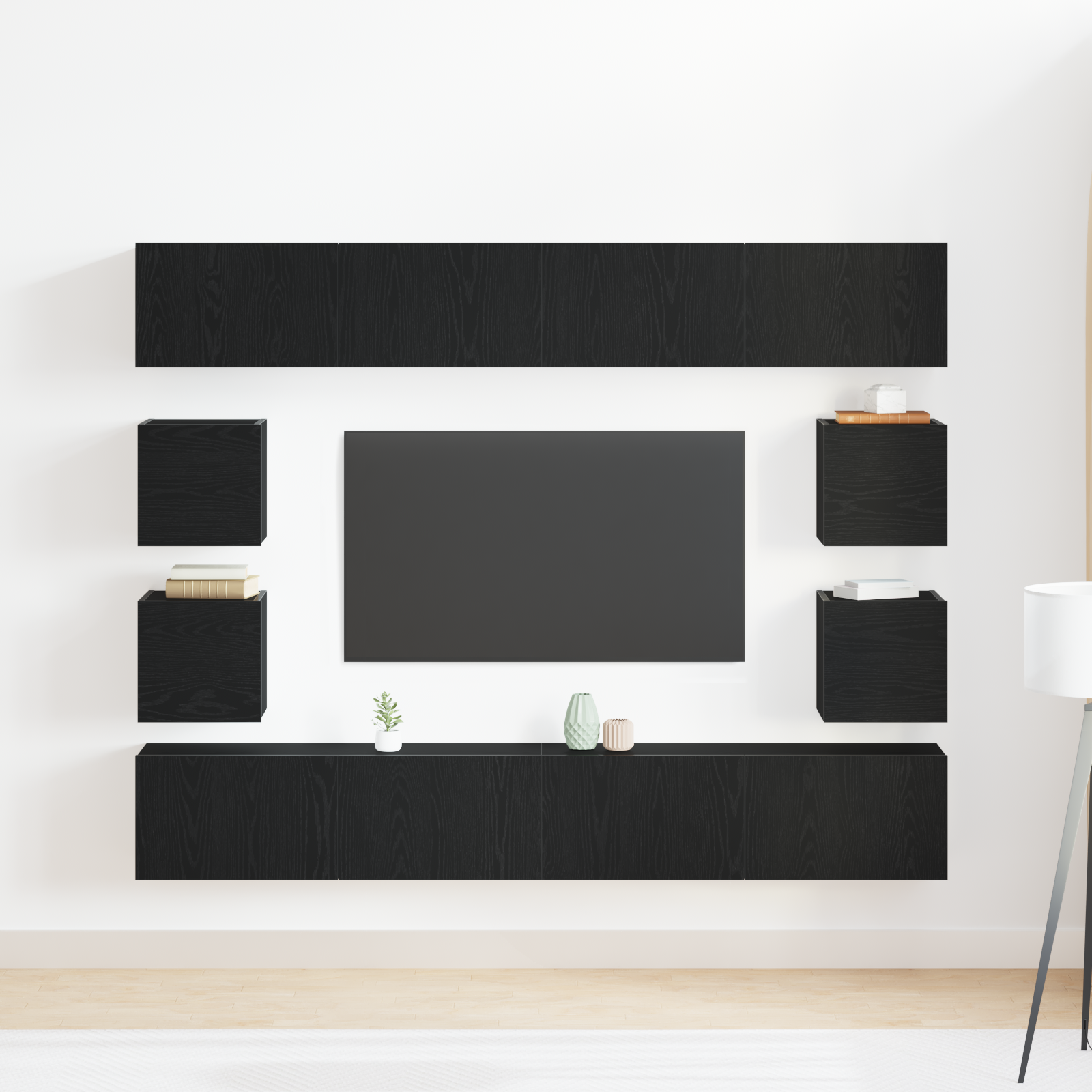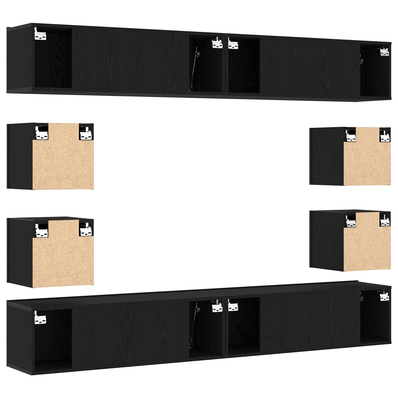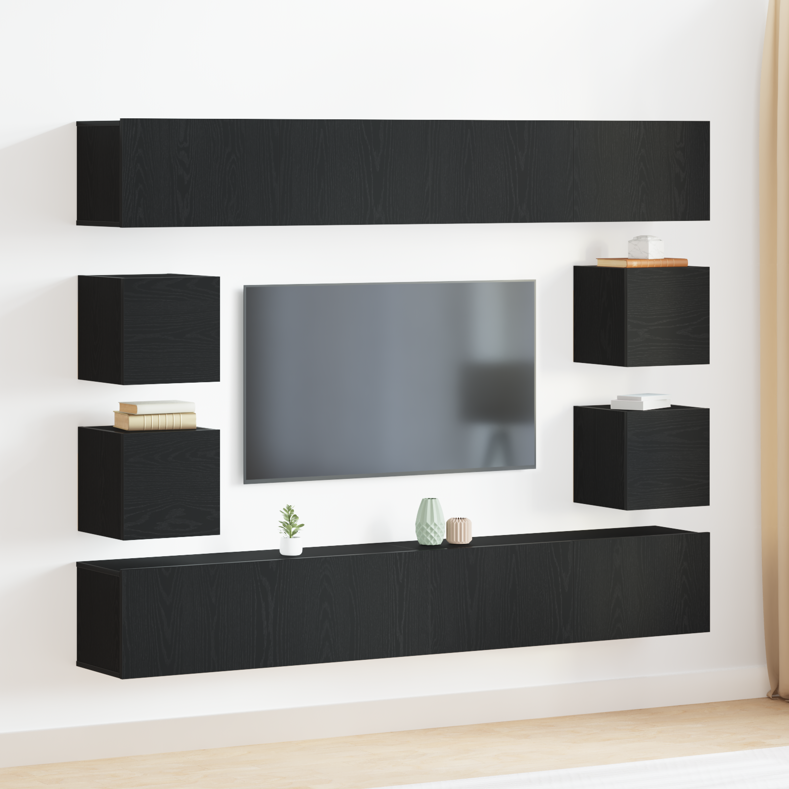 6-delt TV-skapsett - Veggmontert, svart eikeimitert tre