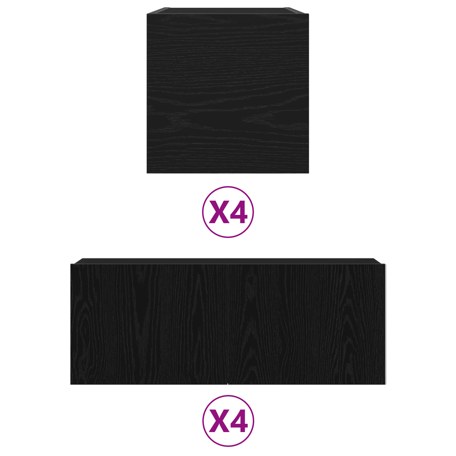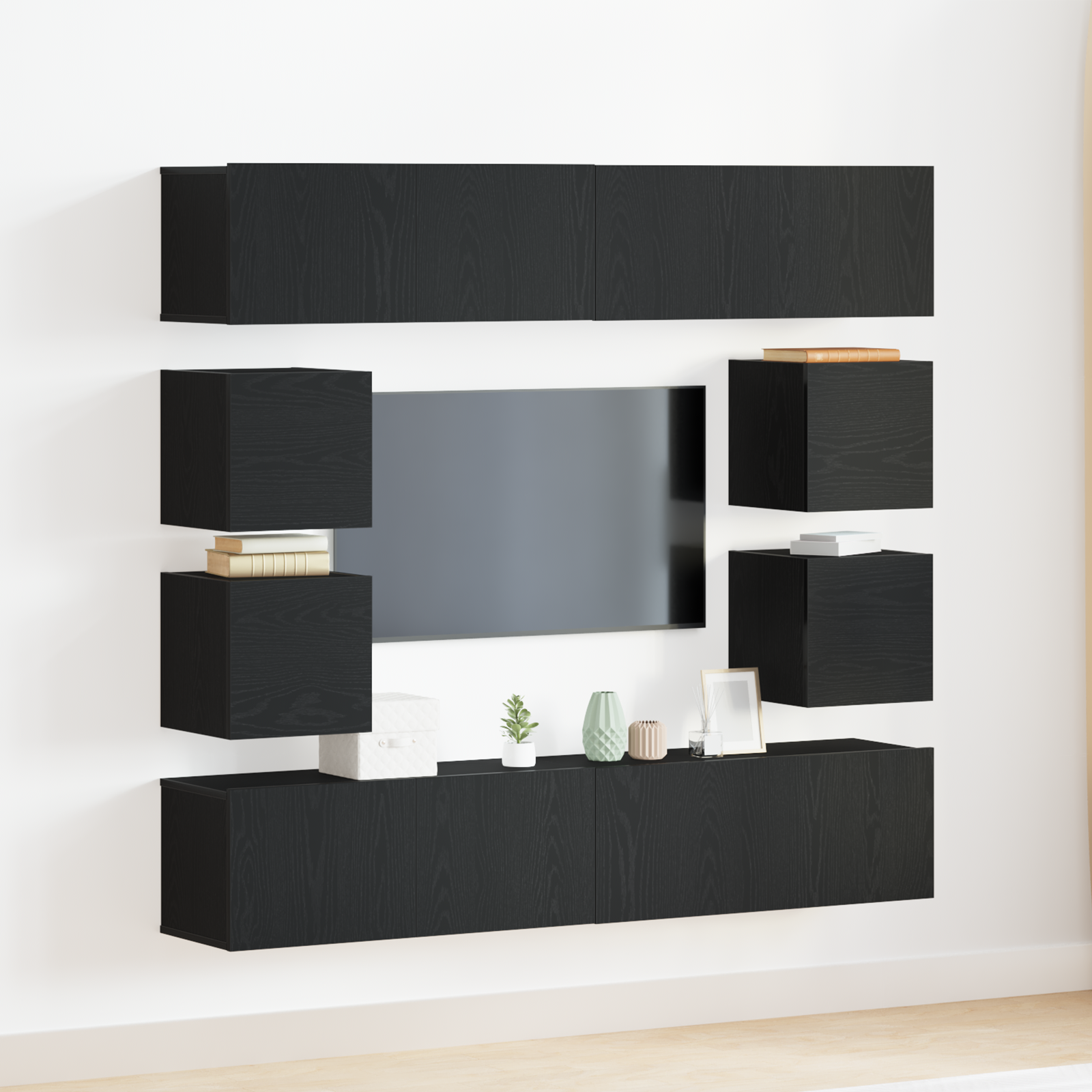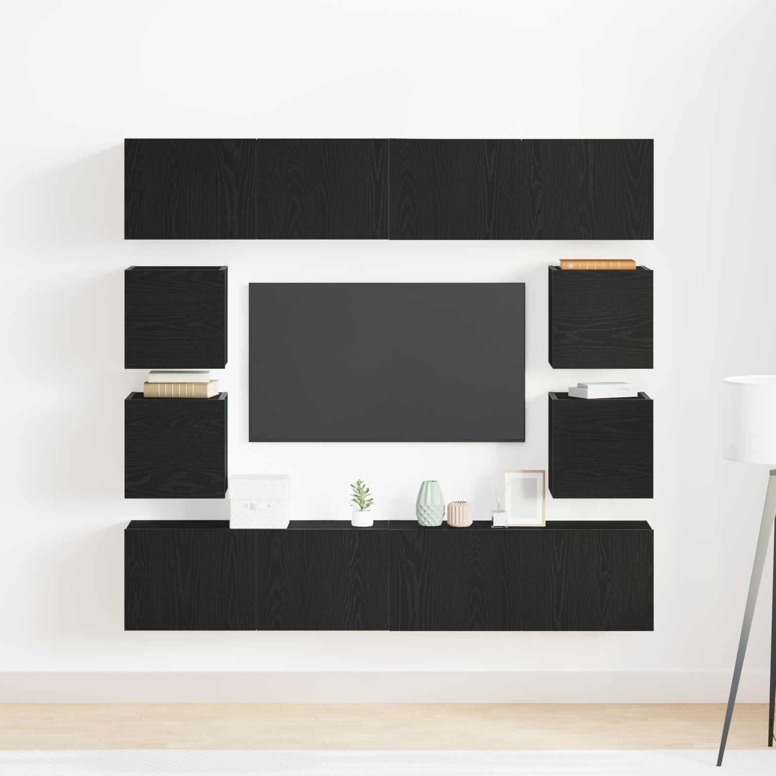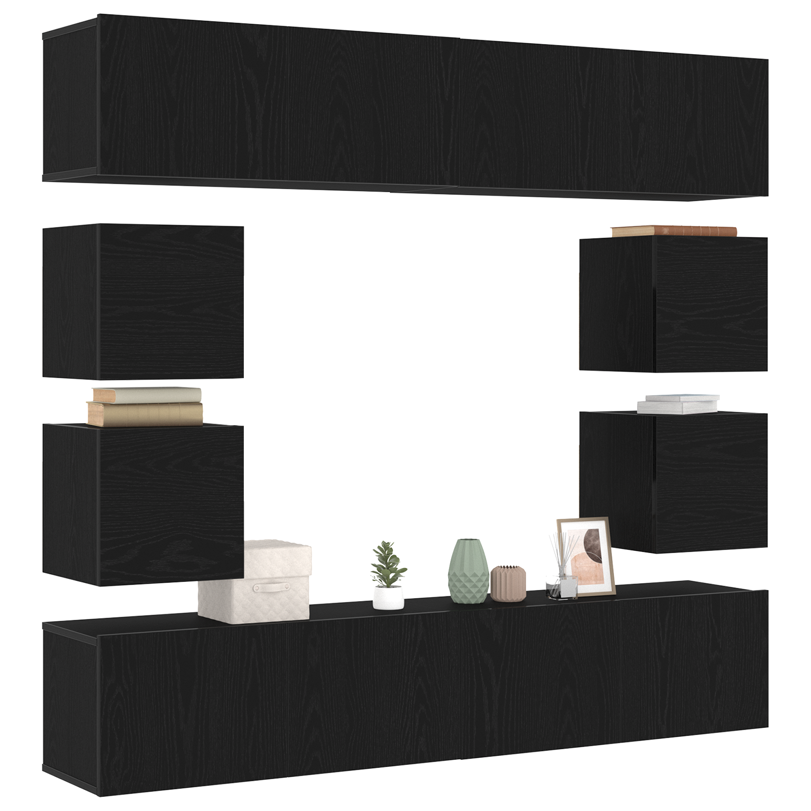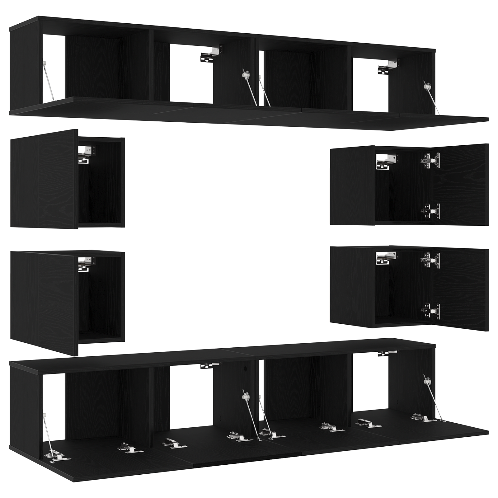 6 Delt TV-Skap Sett, Veggmontert Sort Eik