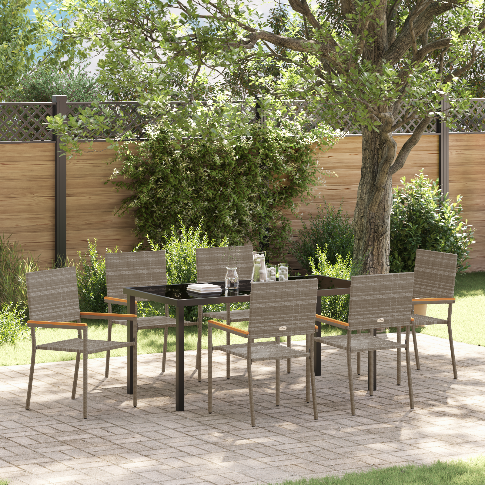 Dette 7-delte hage dining settet kombinerer moderne stil med funksjonalitet, og er et glimrende valg for utendørs dining og avslapning. Med et rektangulært bord og seks komfortable stoler, blir det et innbydende sted for måltider eller sammenkomster, og skaper en koselig atmosfære i en vakker hage, terrasse, eller balkong.