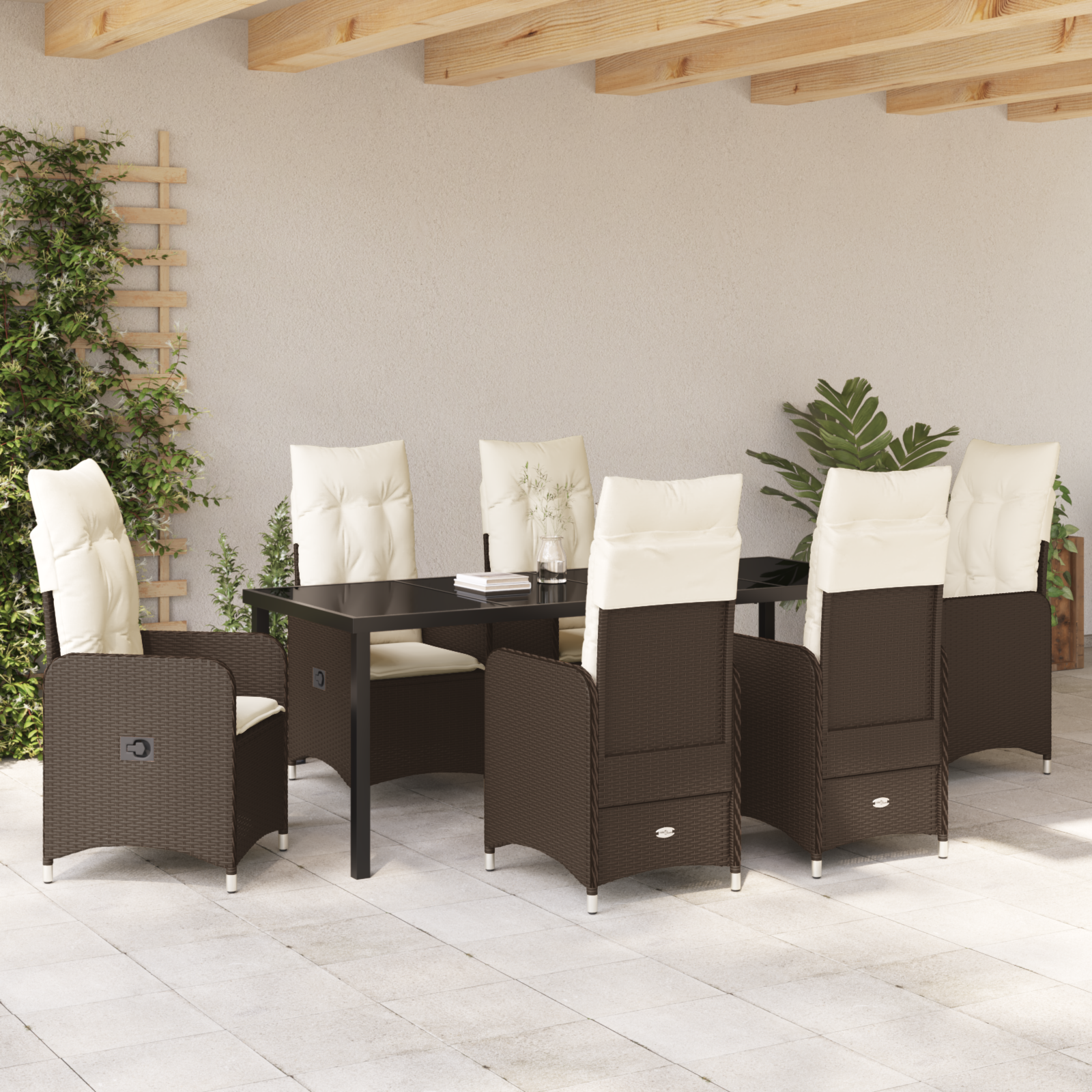 7 Delers Hage Spise Sett med Puter Brun Polyrotting