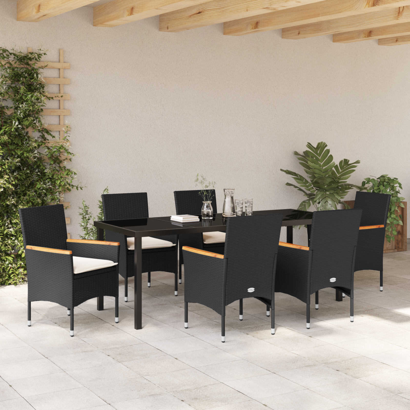 Dette 7-delers hagespisemøbel er både stilfullt og praktisk, og det er et topp valg for uformell utendørs dining. Med et rektangulært bord og seks komfortable stoler, er det perfekt for hyggelige stunder i hagen eller på balkongen.