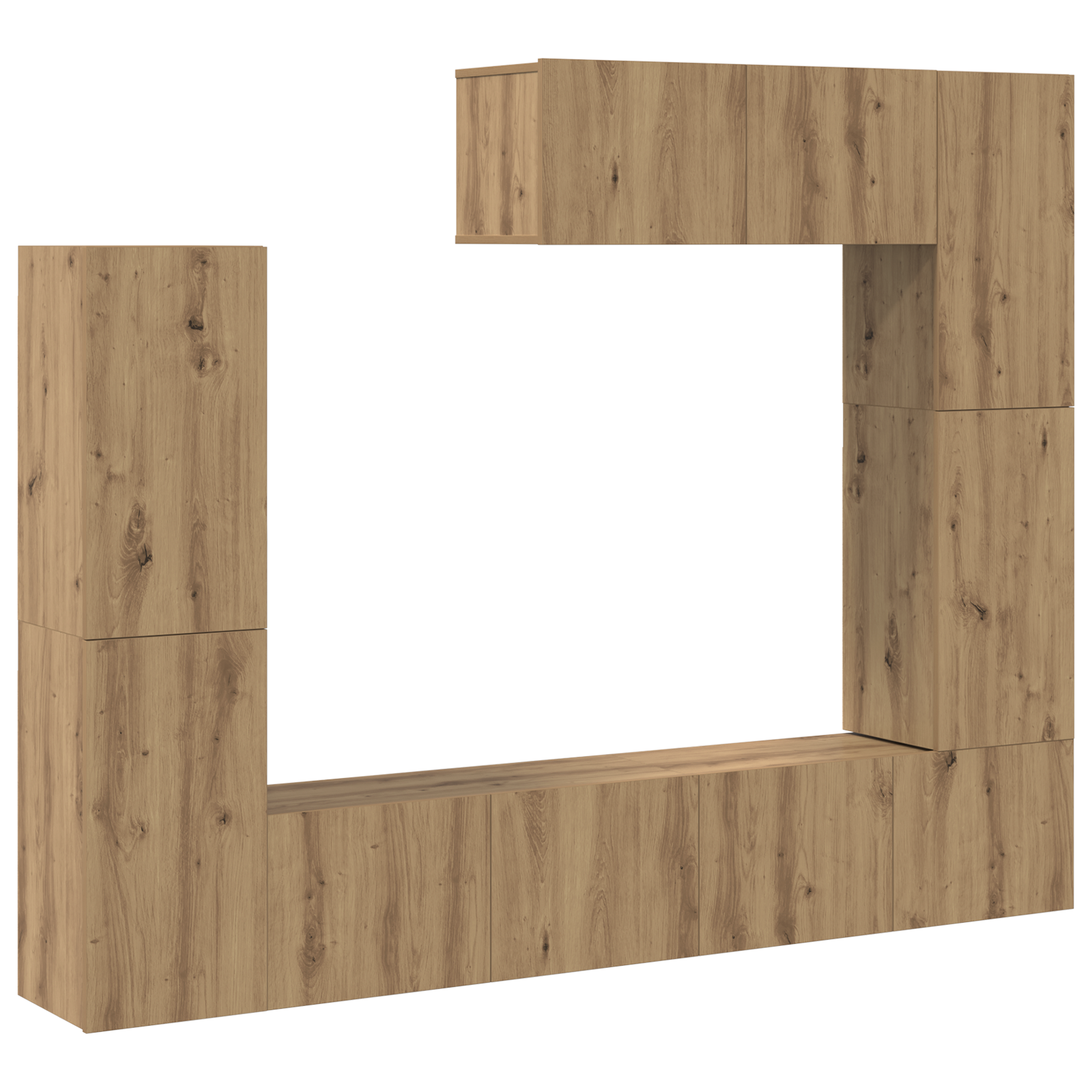 7-delt TV-skapsett – Veggmontert, Eik, MDF