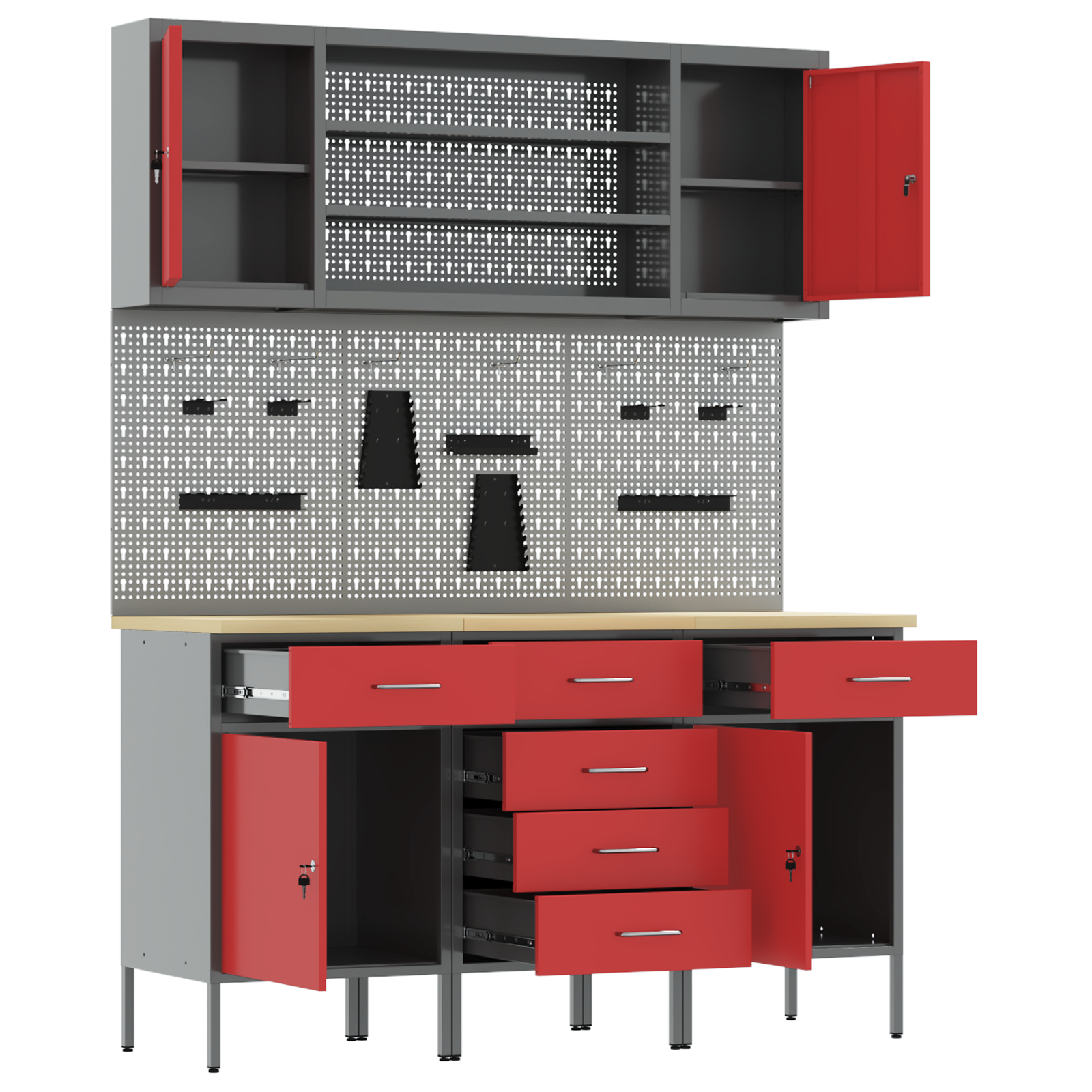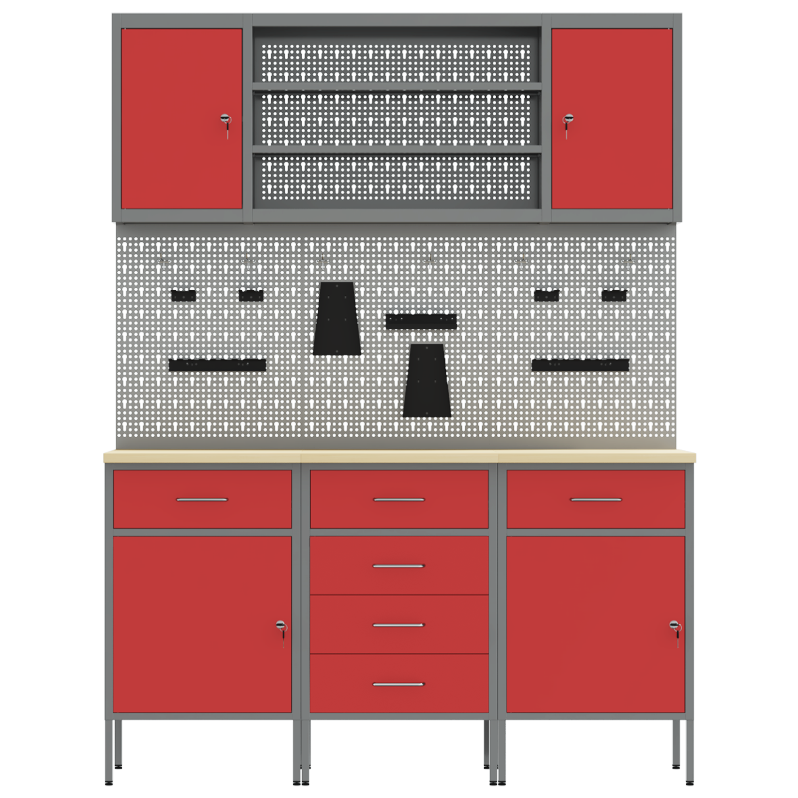 Dette industrielle verkstedskapet kombinerer funksjonalitet med robust design. Det er et perfekt valg for garasjen eller arbeidsområdet ditt. Den friske rød- og gråfargen gir ikke bare gode lagringsmuligheter, men lyser opp arbeidsplassen din ved å holde verktøyene dine ordentlig organisert.