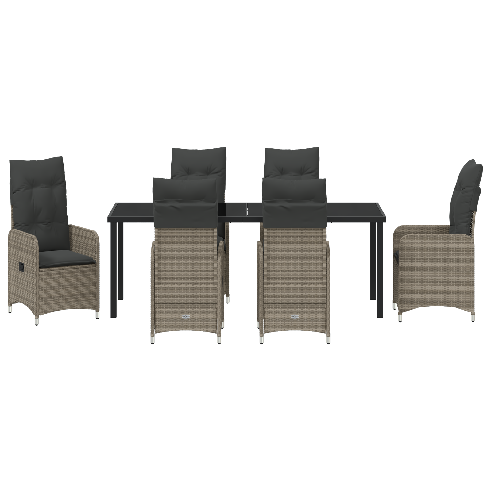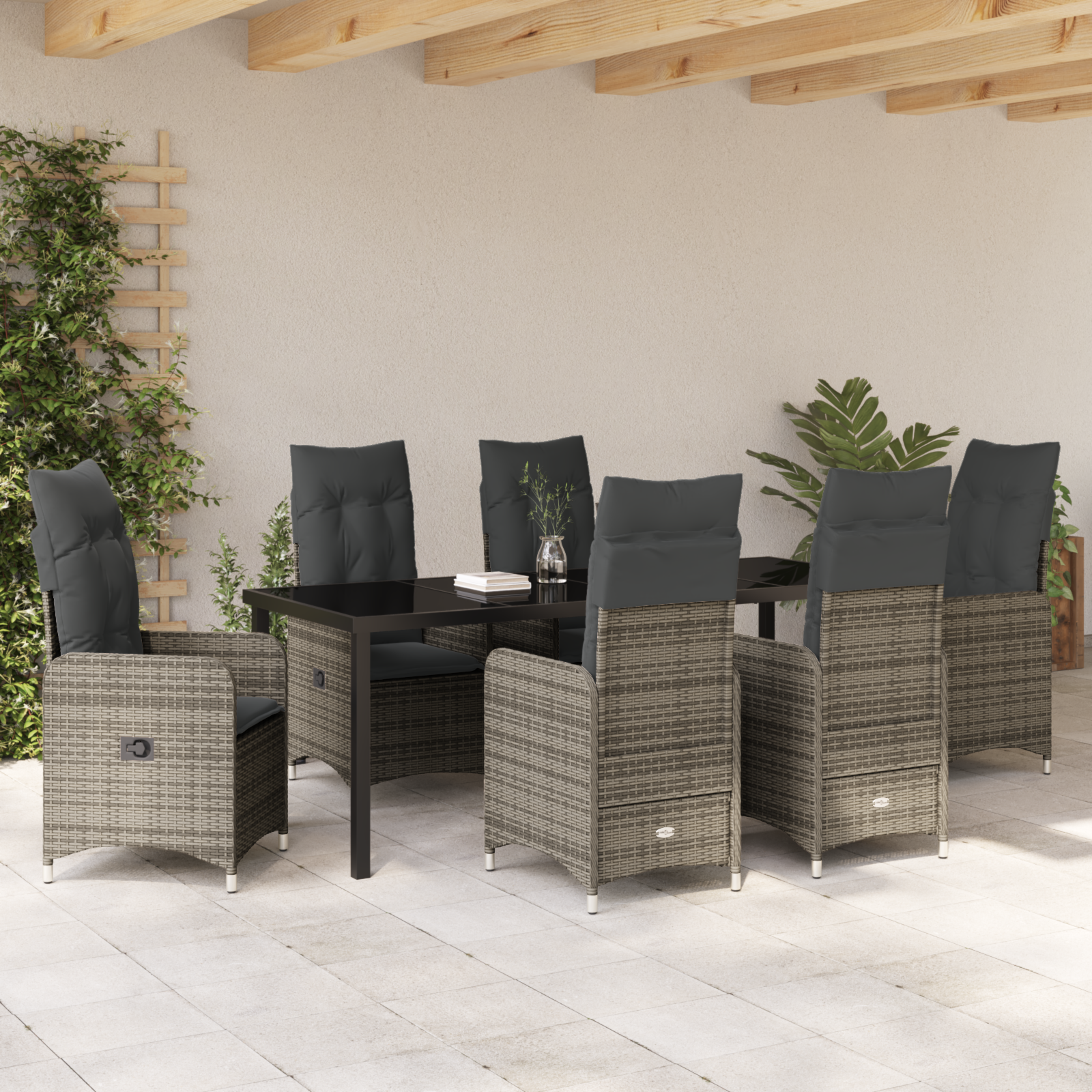 Dette justerbare hagemøbel-settet tar utekos til neste nivå med stilig mørk grå polyrotting og komfortable puter. Enten du nyter solen eller henger med venner, blander det moderne designet stil og funksjonalitet, perfekt for balkonger, hager eller terrasser.