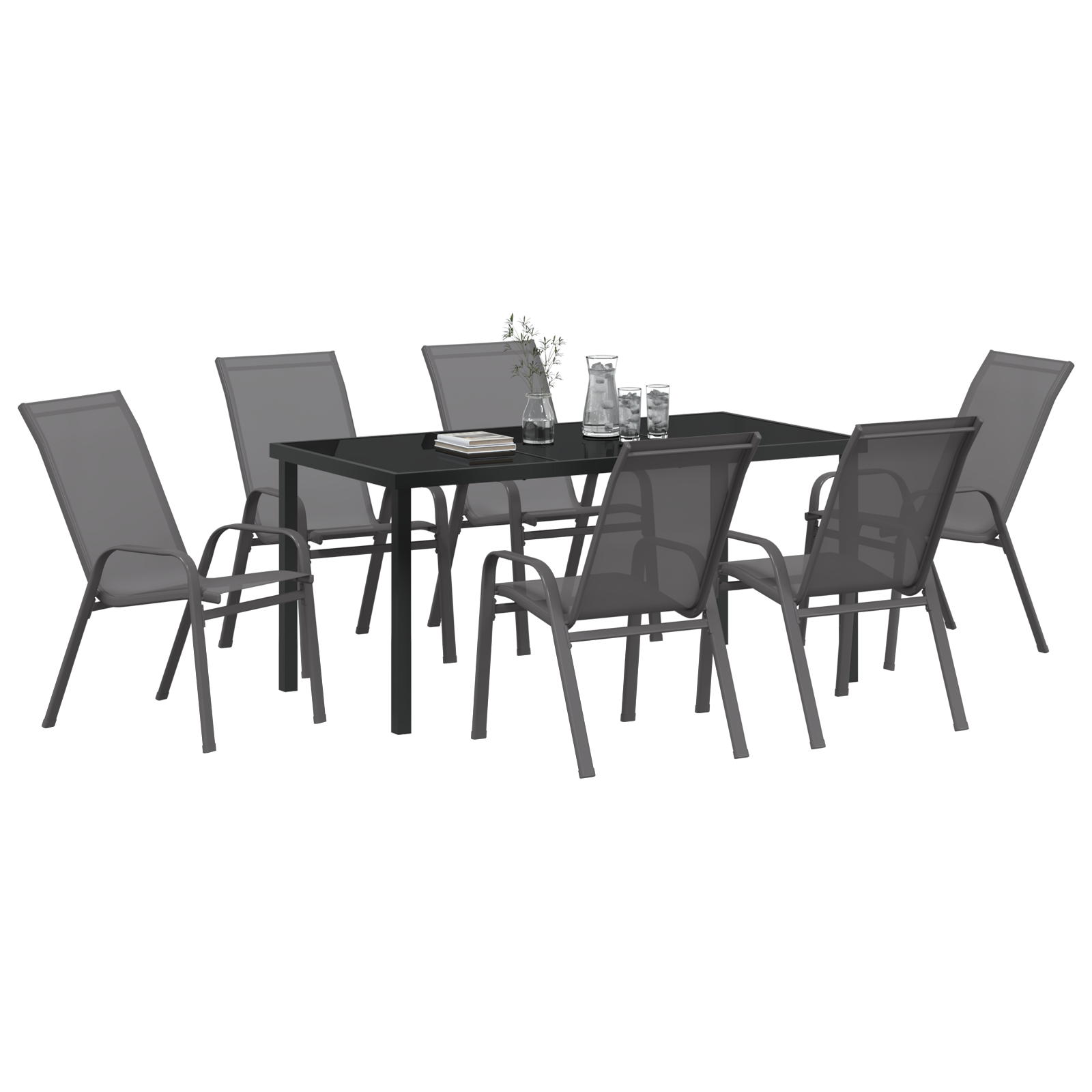 7 Delt Hage Spisebordsett Grå Textilene og Stål