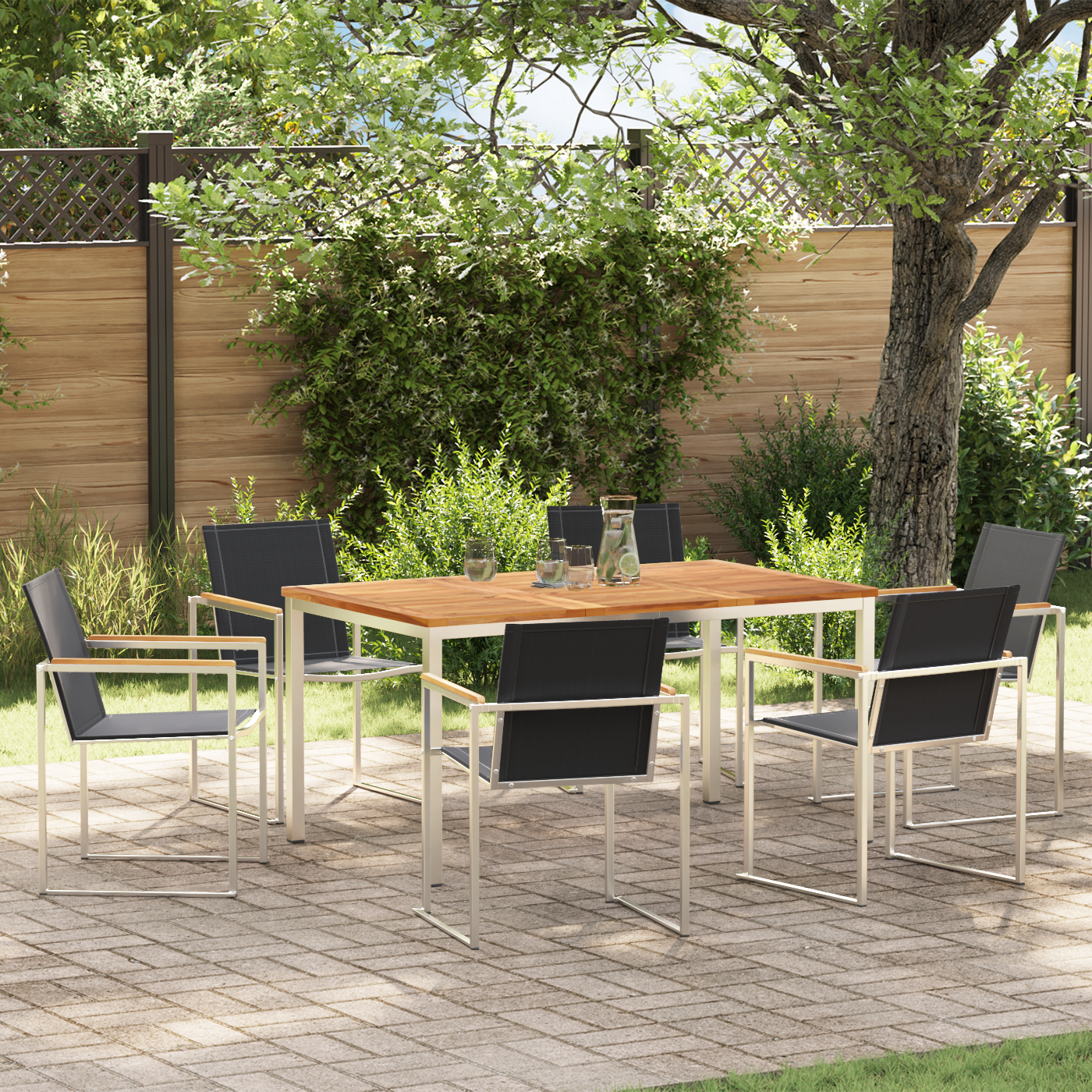 - Teak-setene er både komfortable og støttende, så du kan nyte lange måltider på solfylte dager.