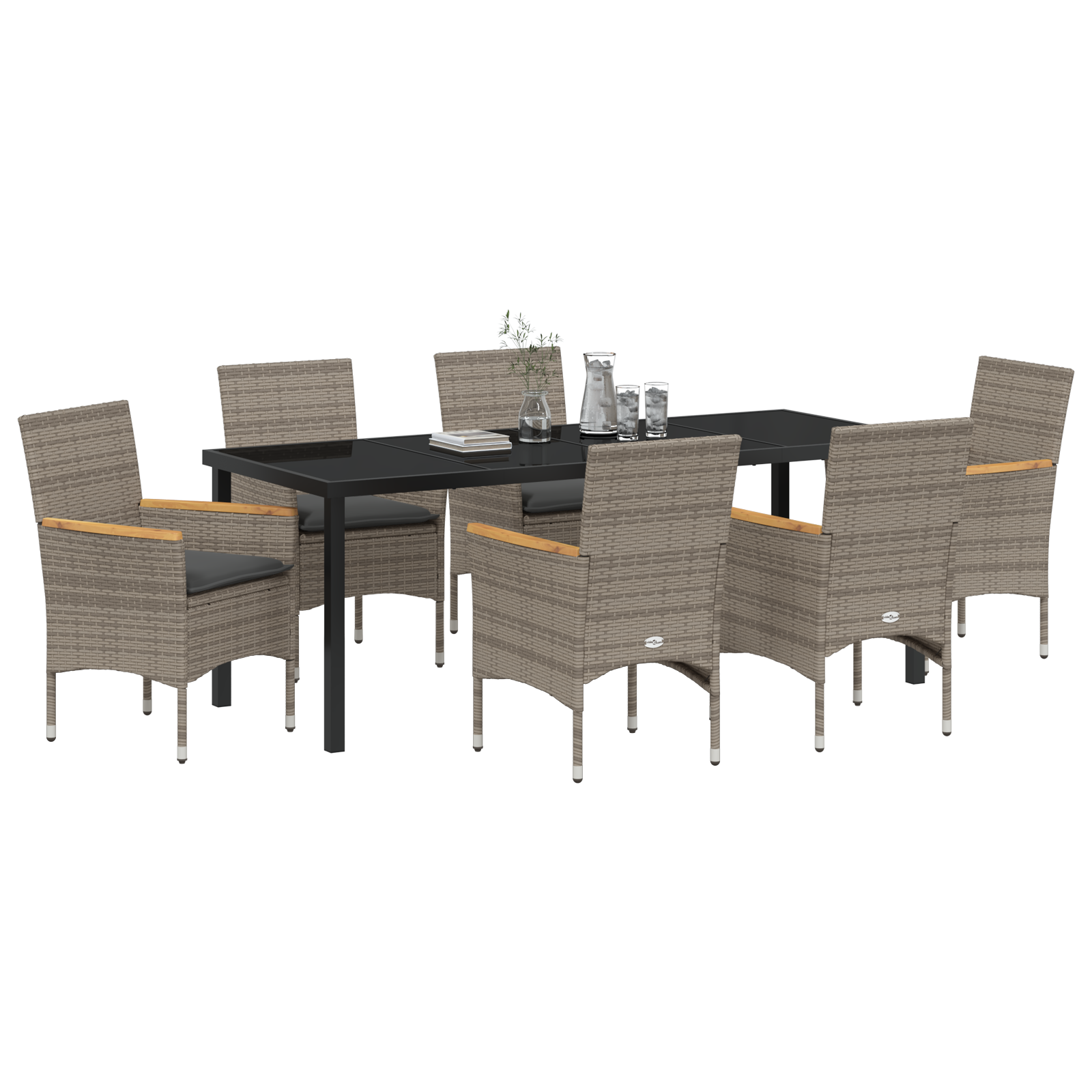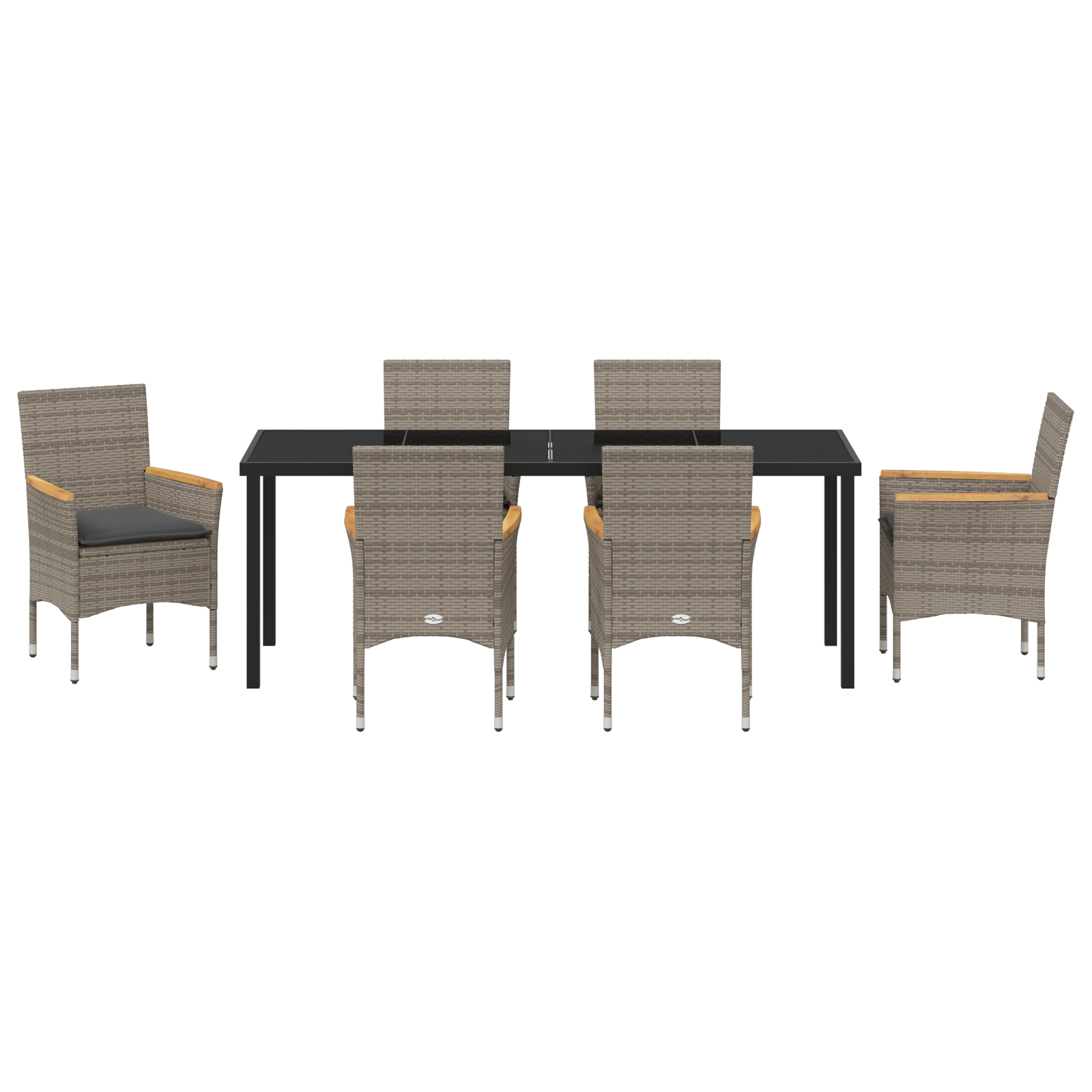 Denne 7-delte hage spisegruppen kombinerer stil og praktisk bruk, og er et fantastisk valg for hyggelige måltidsmomenter. Den rektangulære bordet og seks stoler gir en velkommen atmosfære for sammenkomster på balkongen, terrassen eller i hagen.