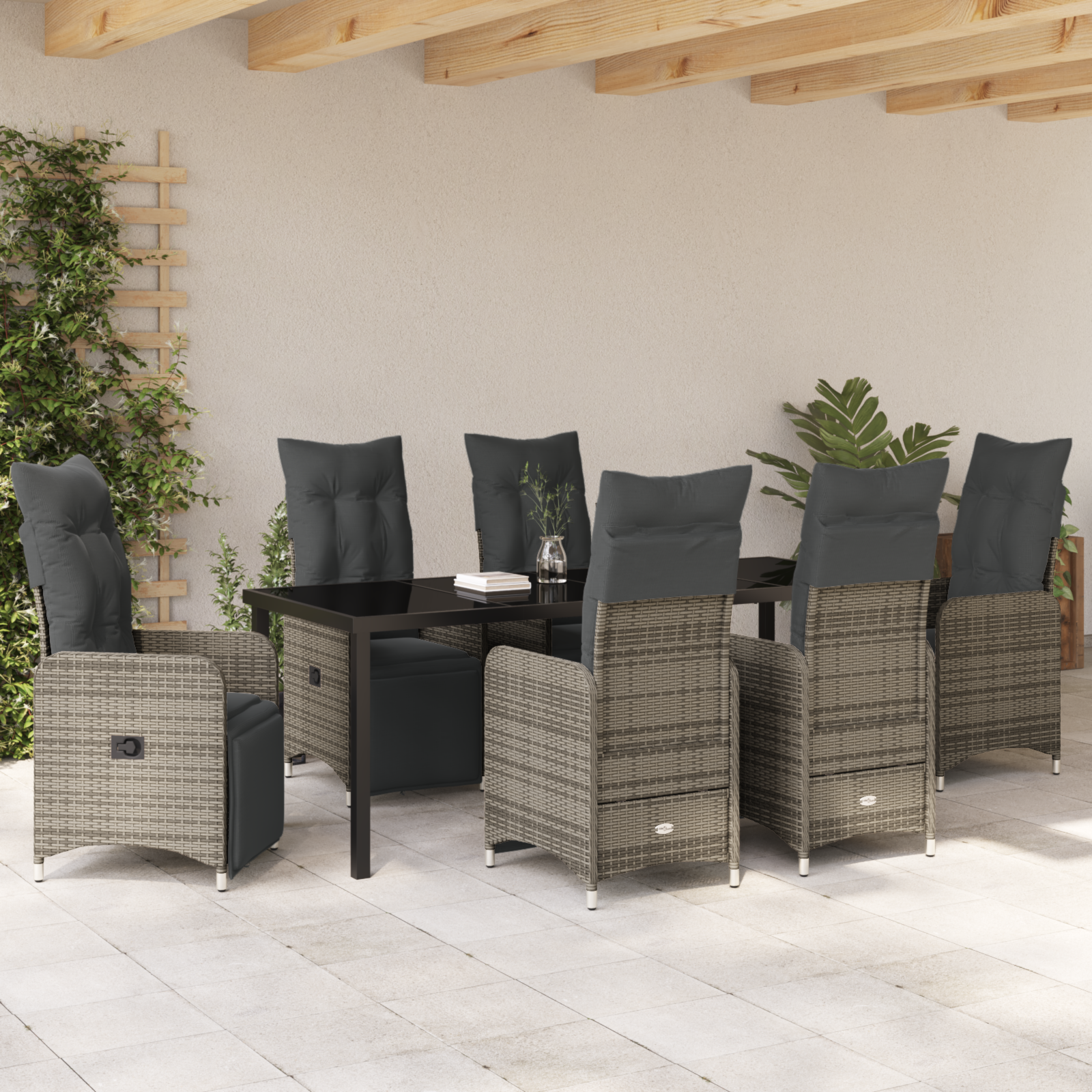 7 Delers Hage Spisesett med Puter Grå Poly Rattan
