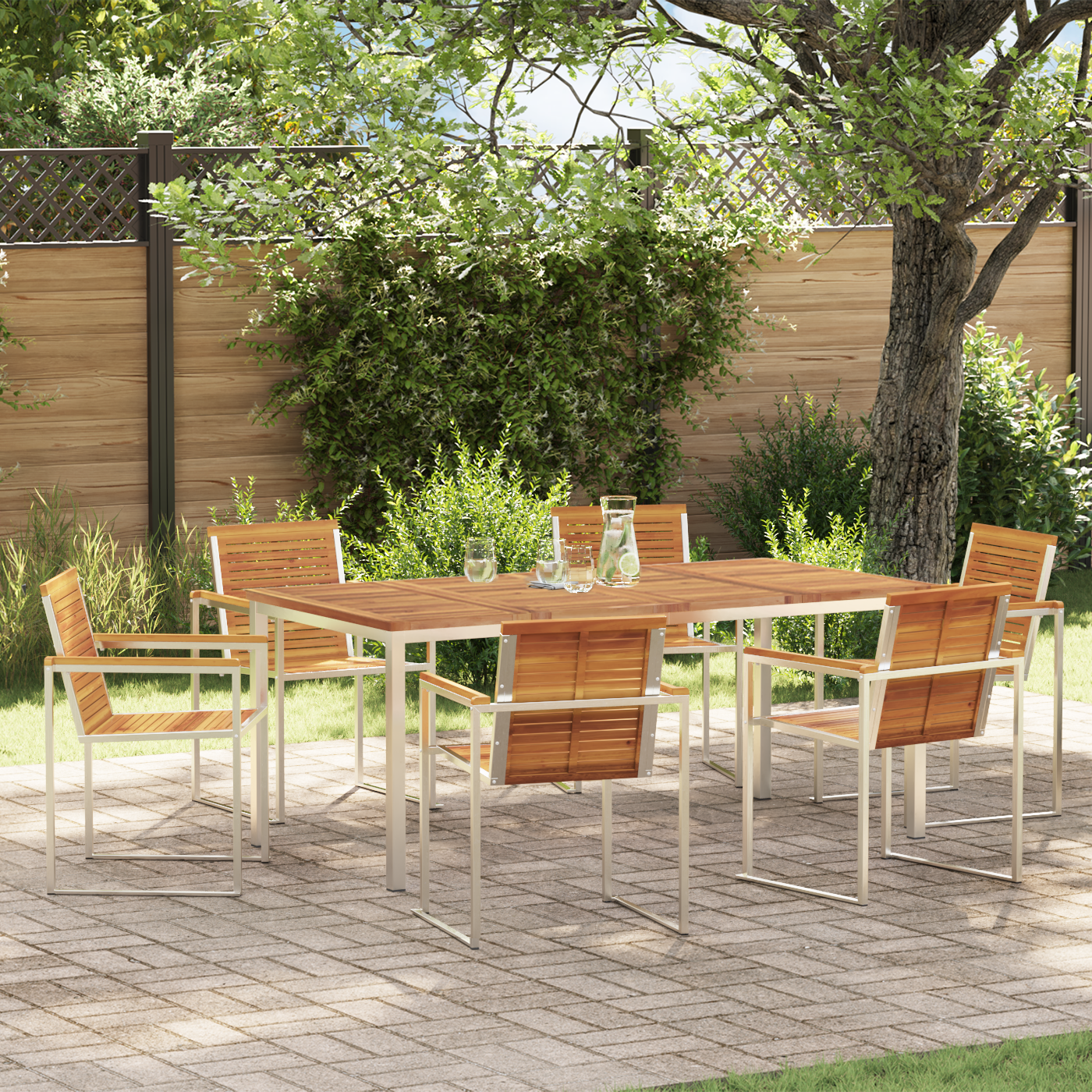 - Holdbare materialer: Laget av solid akasietre og en rustfritt stålramme, dette spisesettet er bygget for å vare i all slags vær, og gir komfort og stil i mange år.