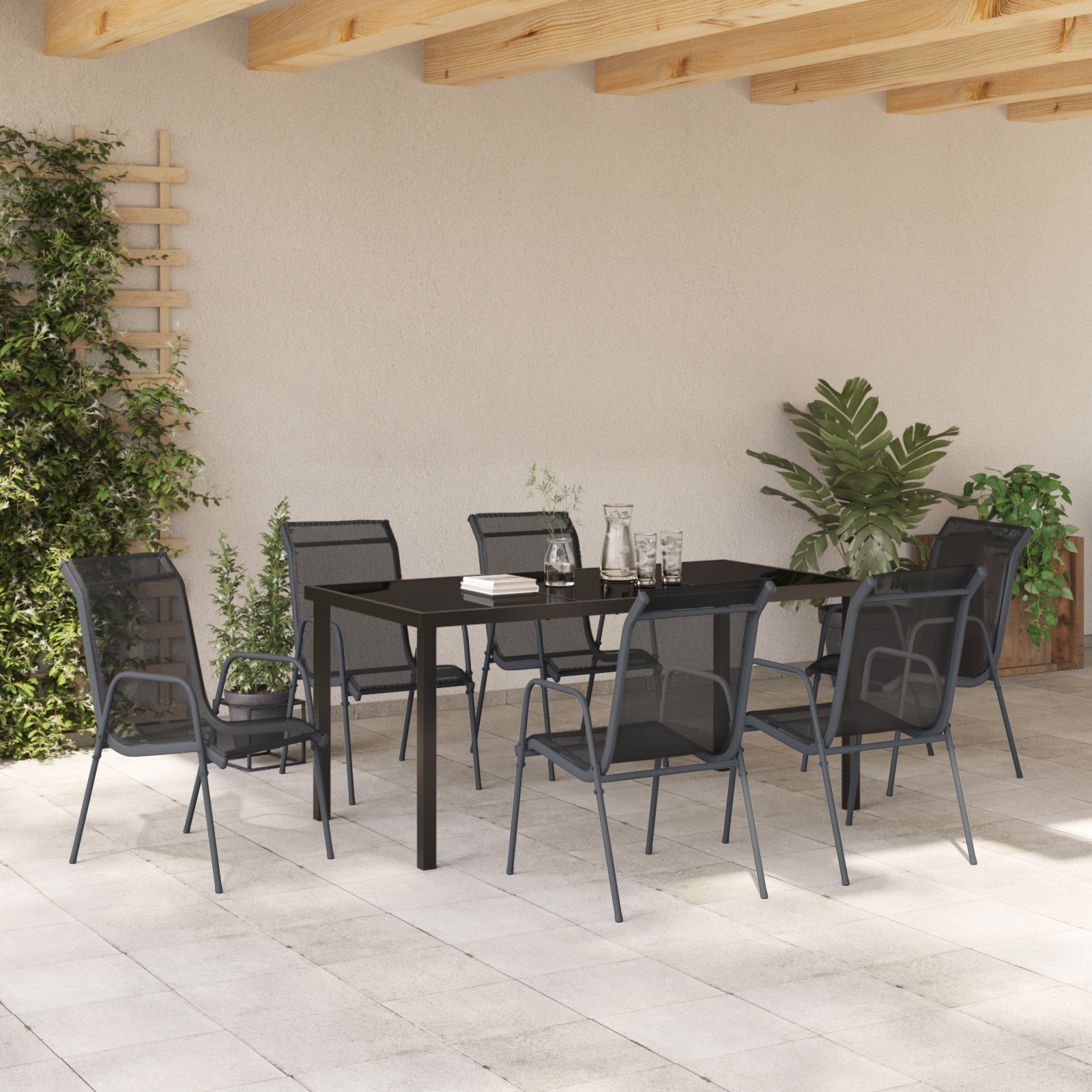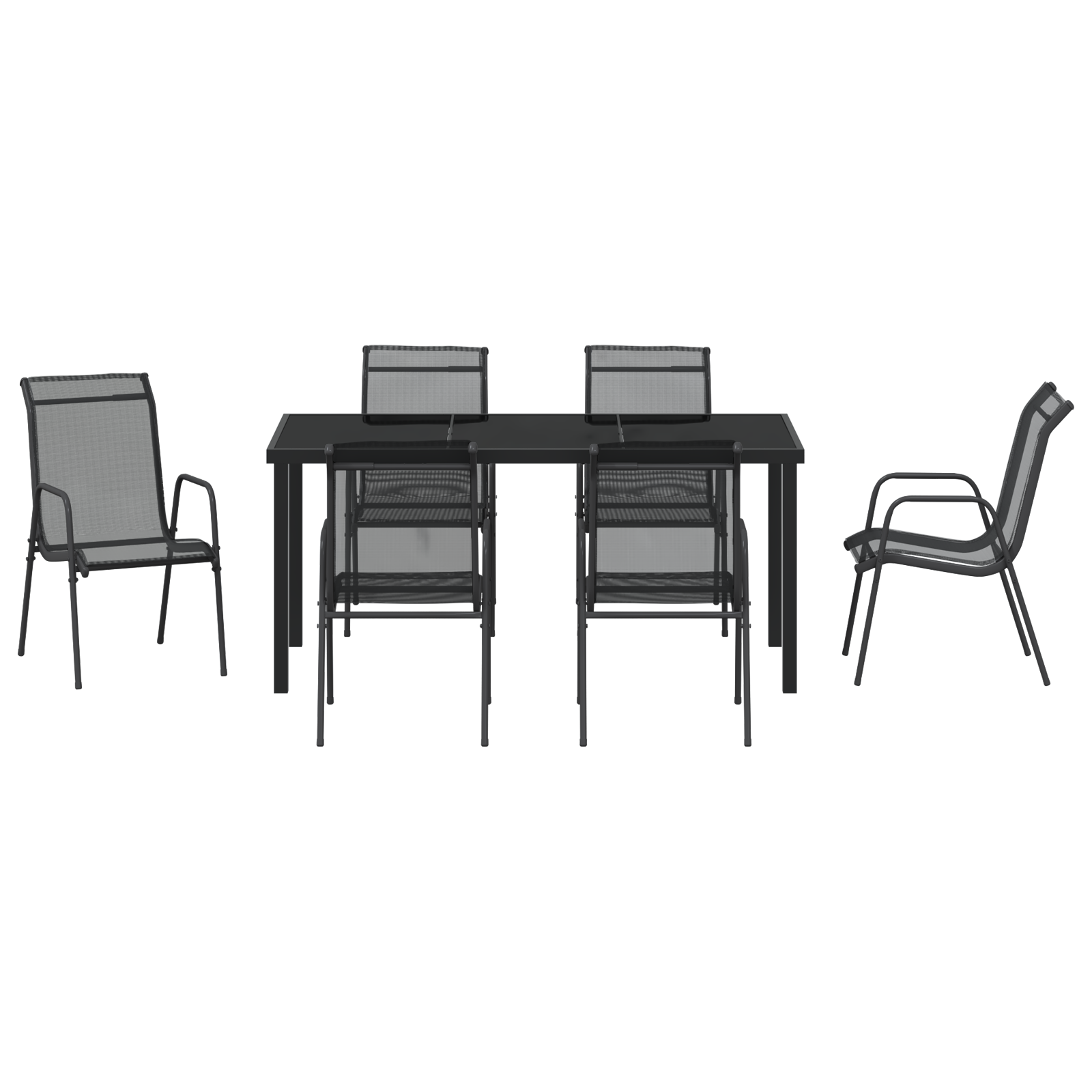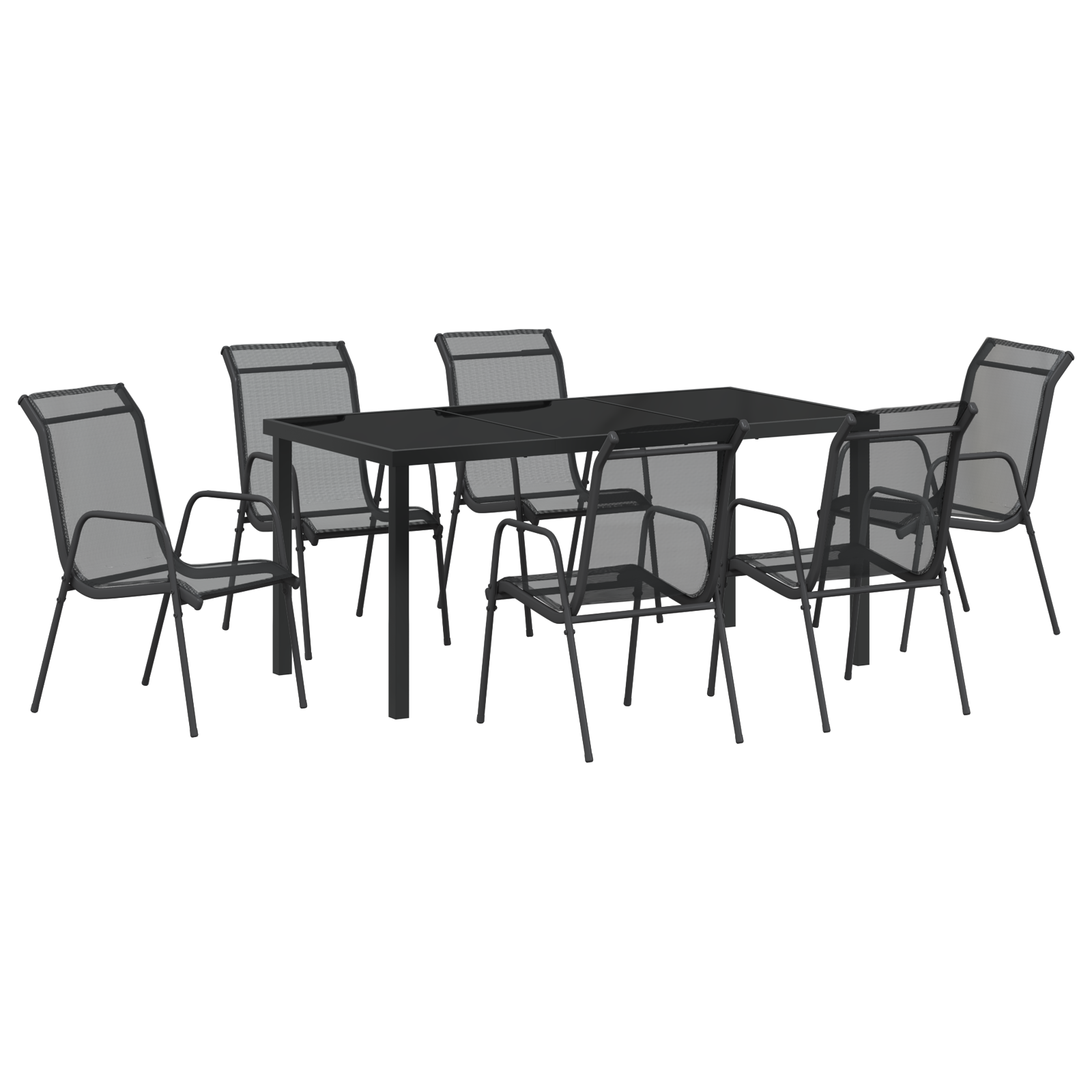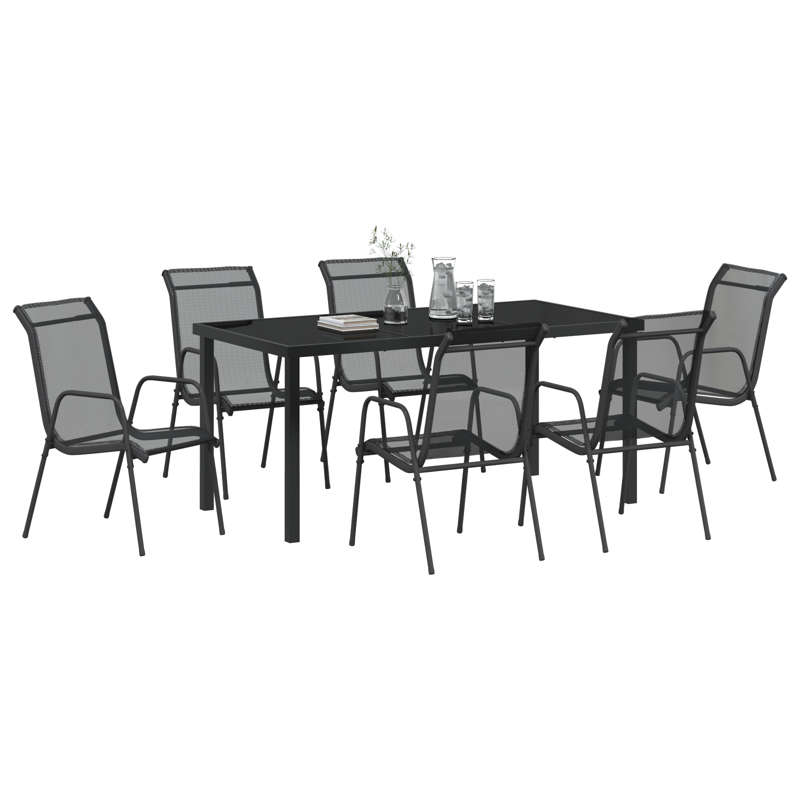 Oppgrader utendørsspisingen med vidaXL 7-delt hage-spisesett. Dette komplette settet kombinerer moderne stil med kvalitetsmaterialer, perfekt for å ha familie og venner på besøk.
