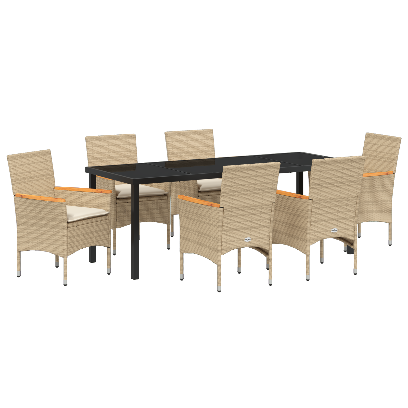 7-delt hage spisestue med puter beige polyrotting