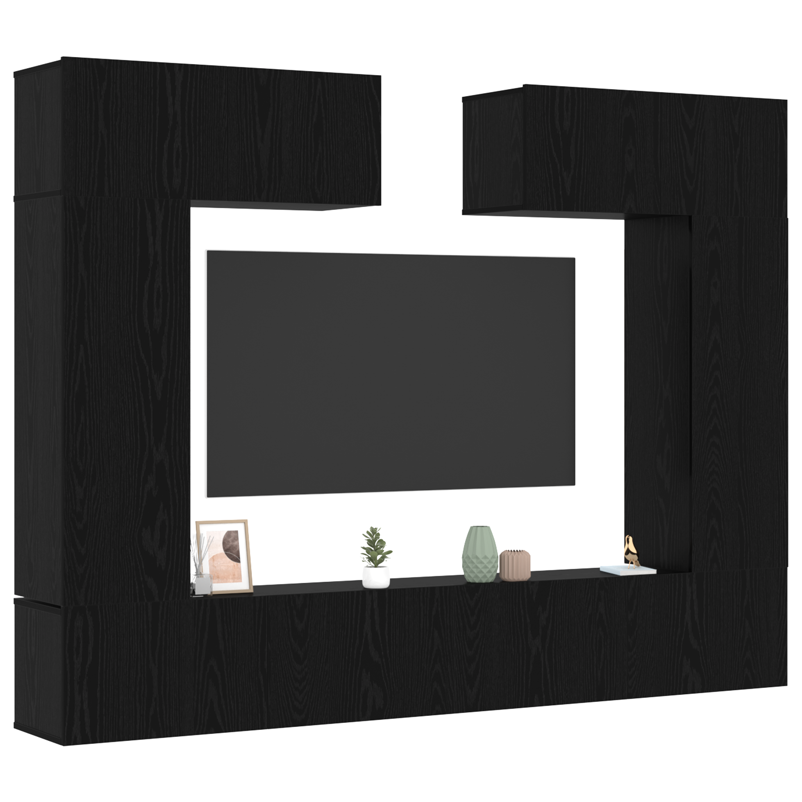 8-delt TV-skapsett - Veggmontert i svart eik, laget av tre