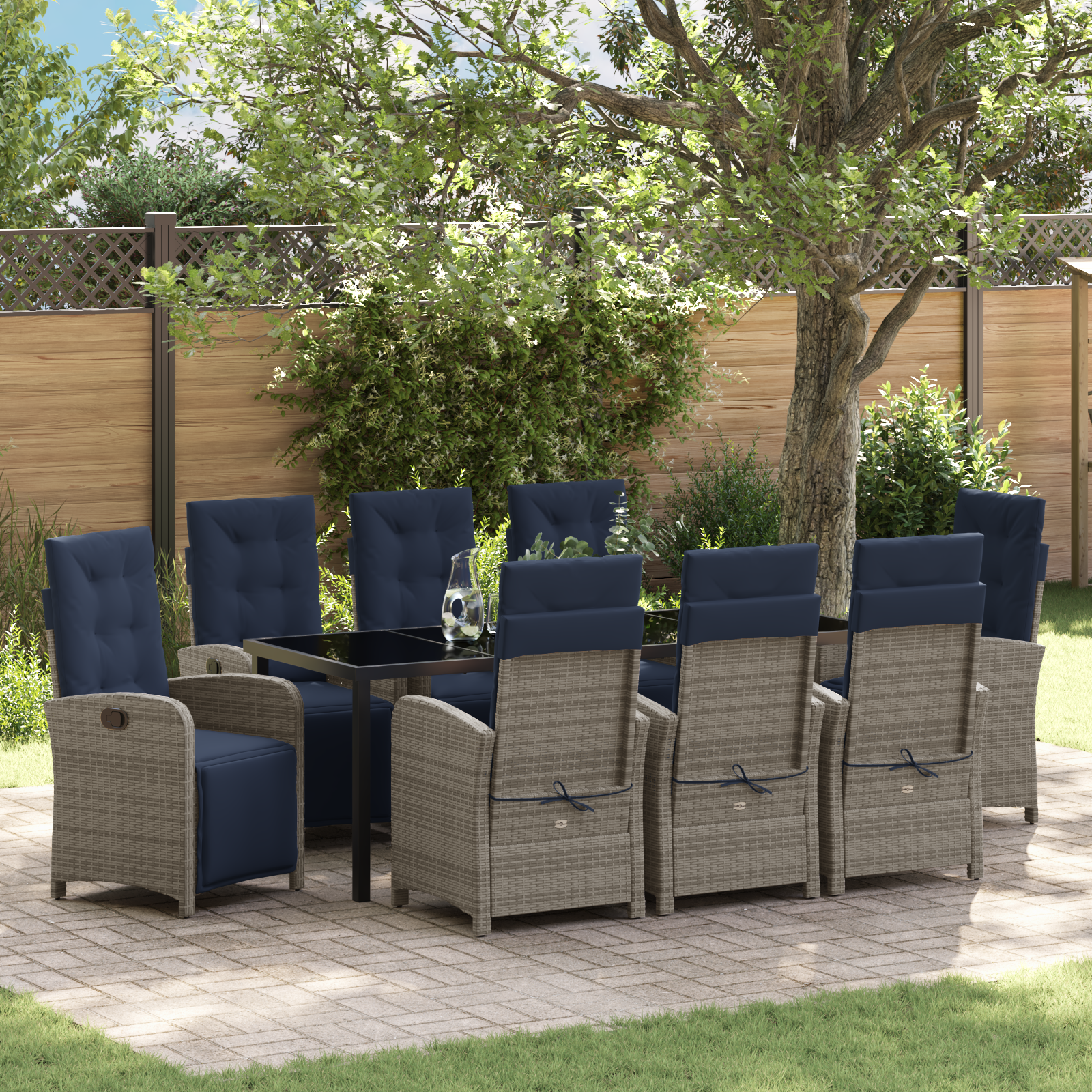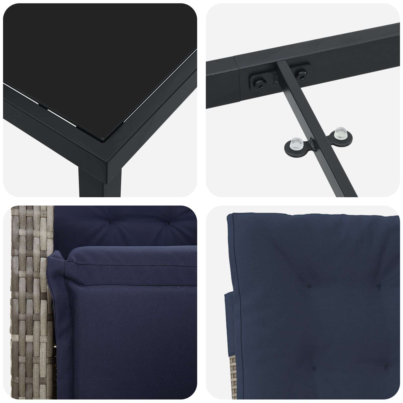 Dette paret med reclining hage stoler med fotstøtte er den perfekte blandingen av stil og komfort for din uteplass. Den stilige grå poly-rotang veven og marineblå putene gir et moderne preg, så disse stolene passer perfekt på terrassen, balkongen eller i hagen.
