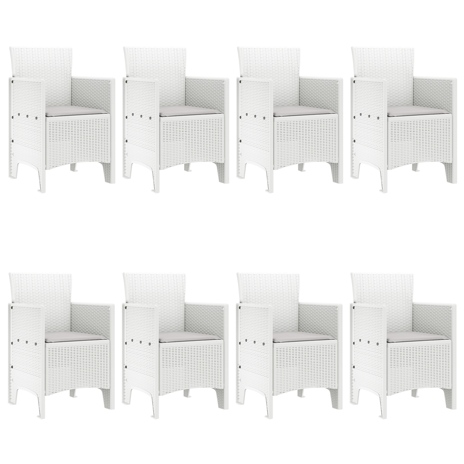 9 Delt Hage Spisebord Set med Puter Hvit Poly Rattan