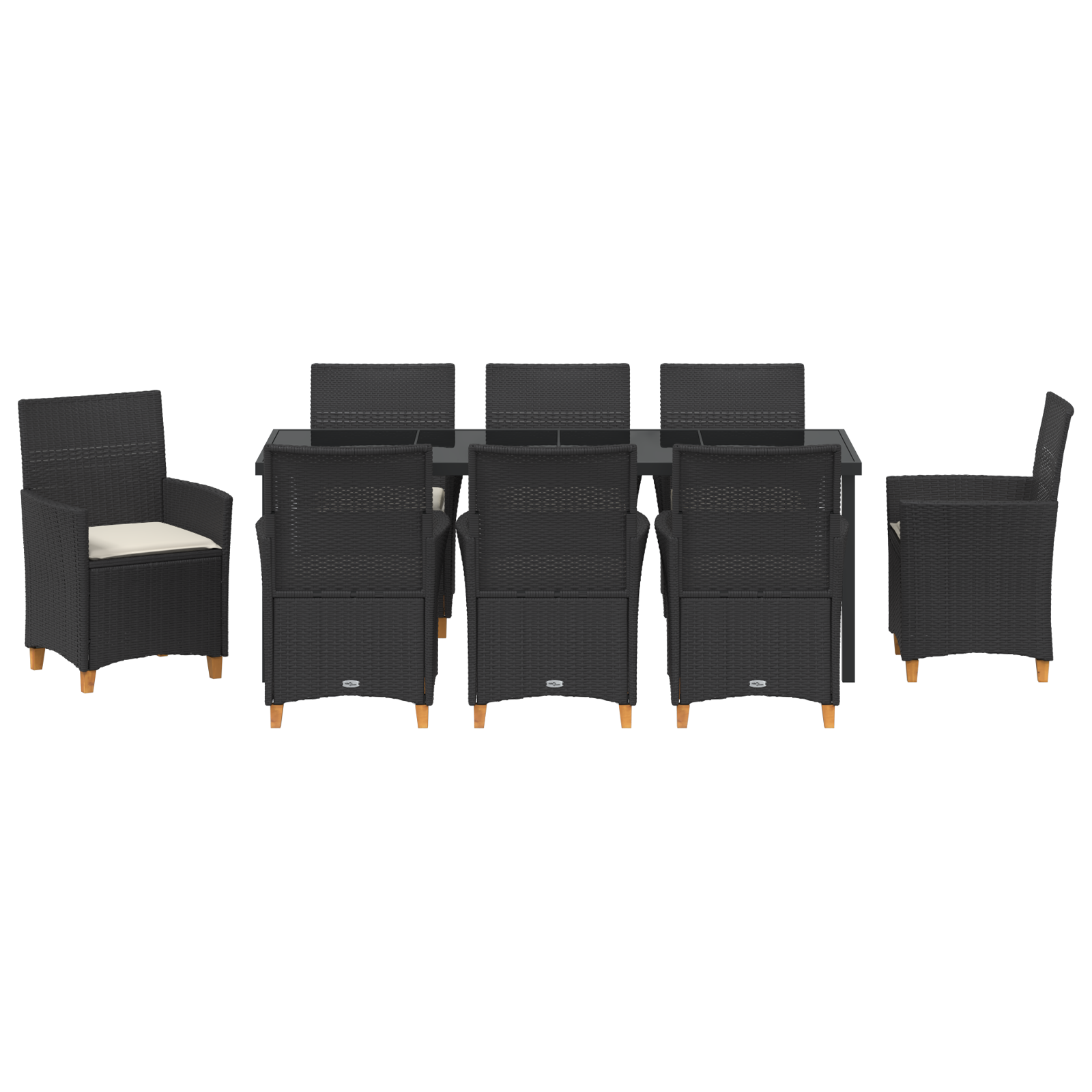 9-delt Hage Spisebordsett med Puter Svart Poly Rattan