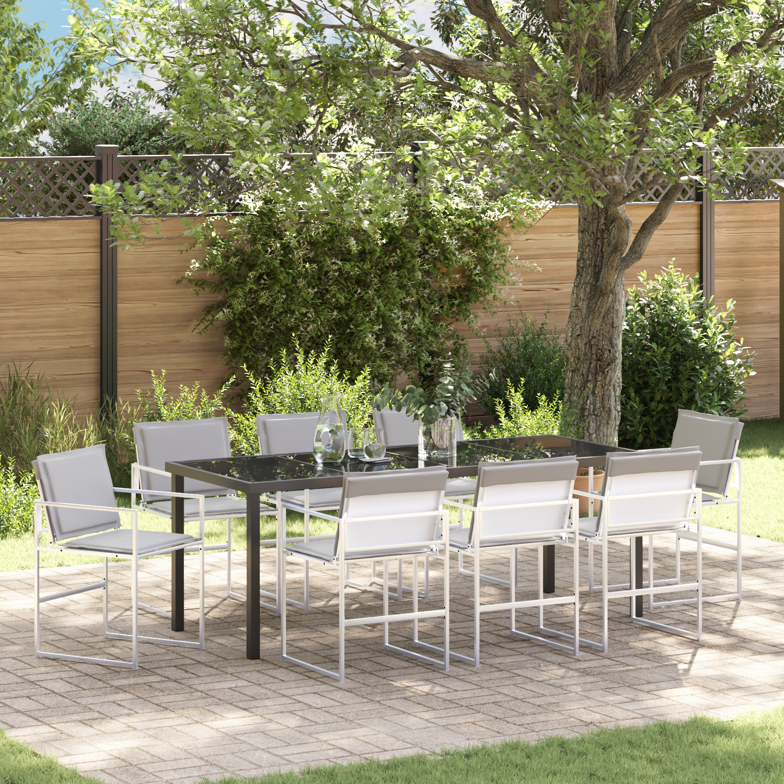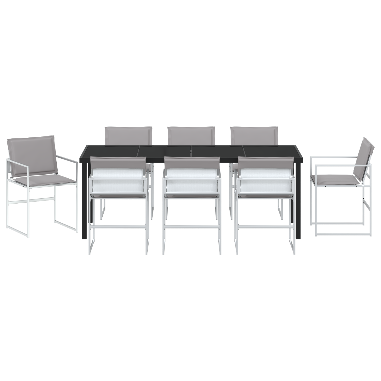 9-delt hage-spisegruppe med puter Hvitt Textilene og stål