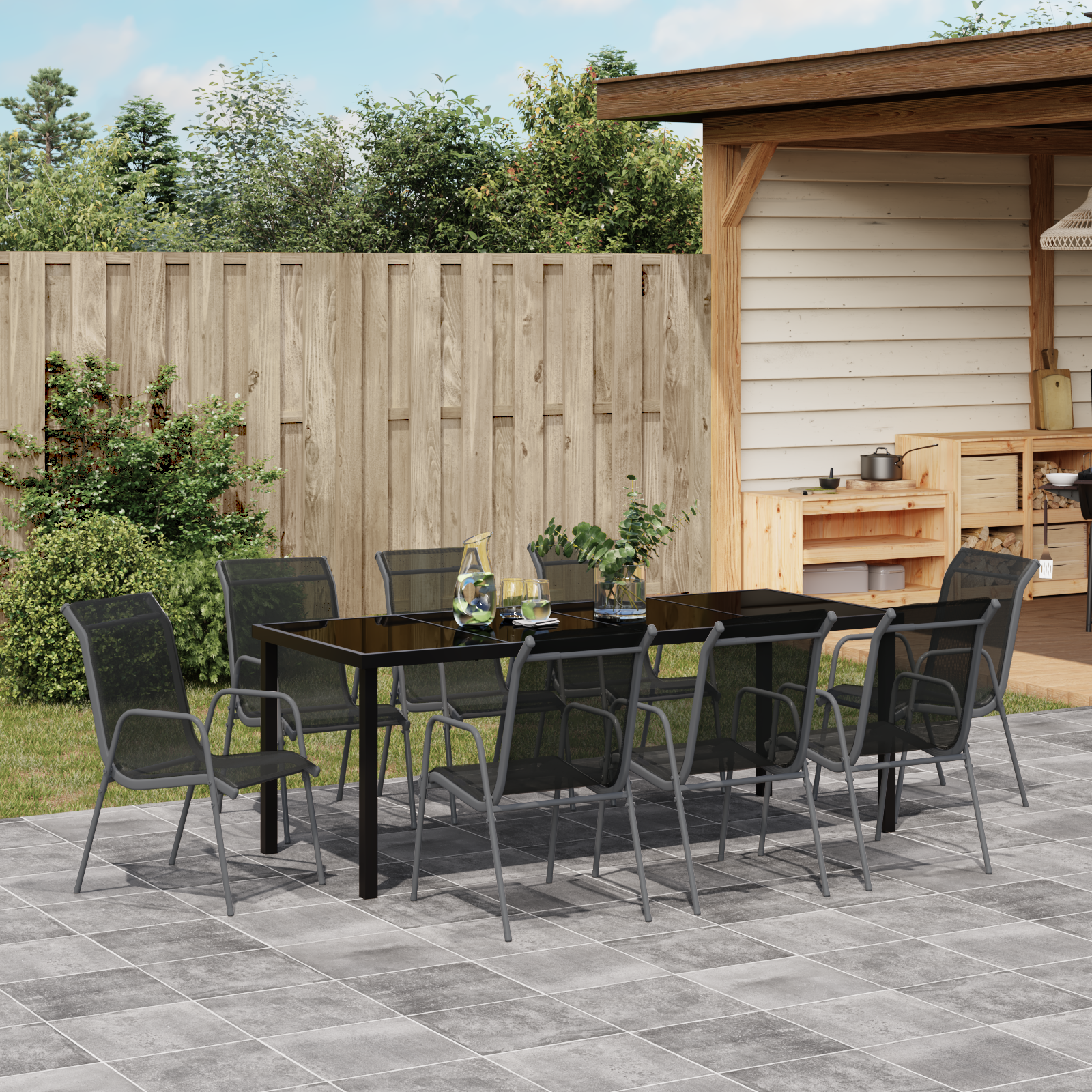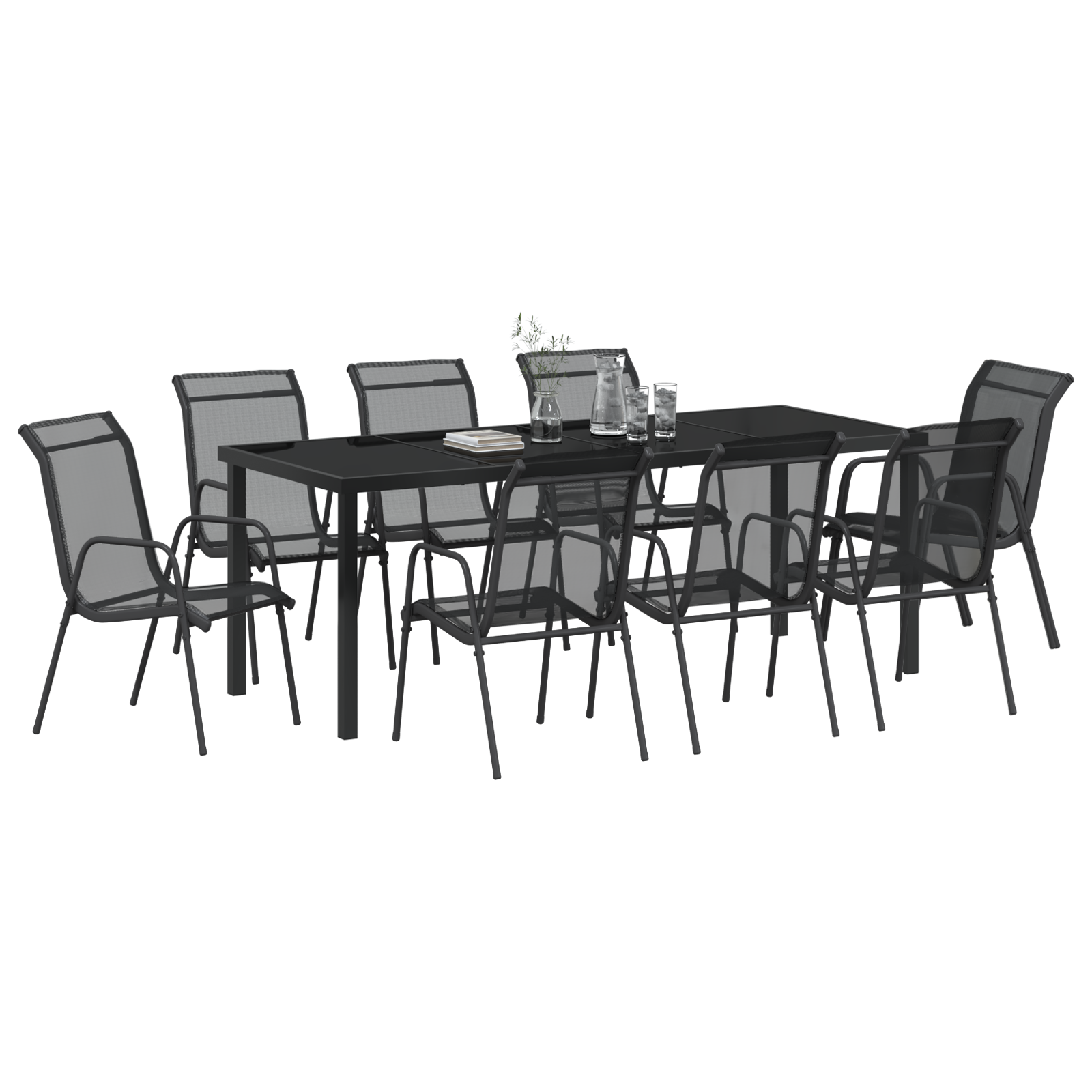 9-delt hage spisegruppe svart Textilene og stål