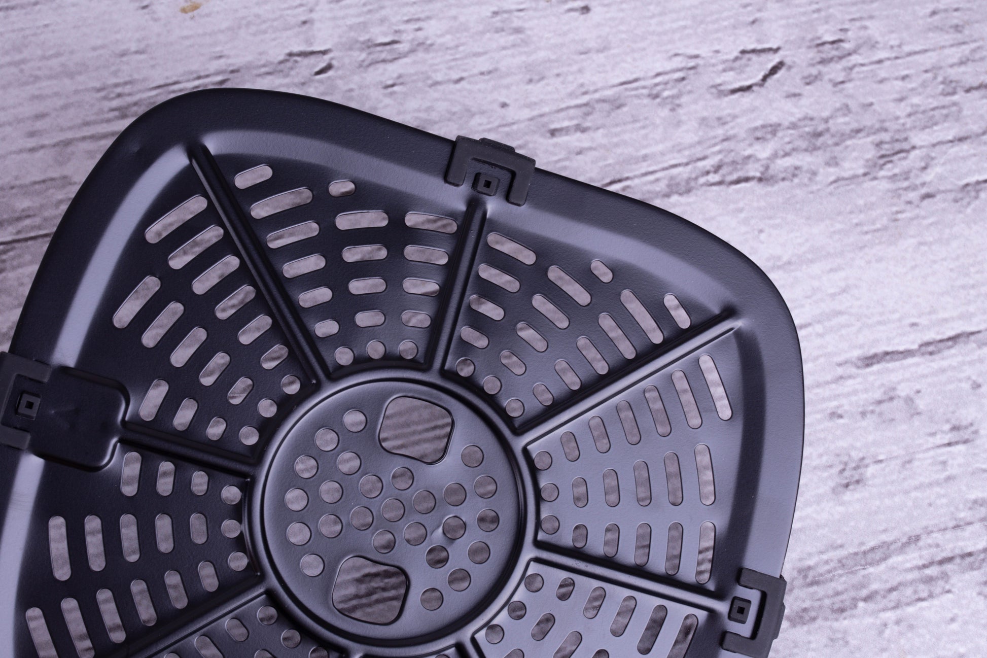 Den har XL nonstick belagt matskuff på 6,3 L som er enkel å holde ren, kurv og oppsamlingsrist i bunnen kan vaskes i oppvaskmaskin