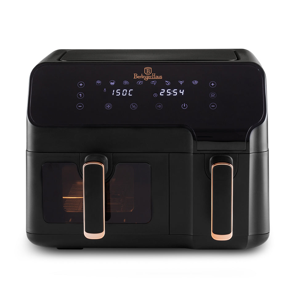 Råstilig og elegant airfryer med 2 separate skuffer, og vindu for å observere maten mens den steker, fra Berlinger Haus sin Monaco kolleksjon