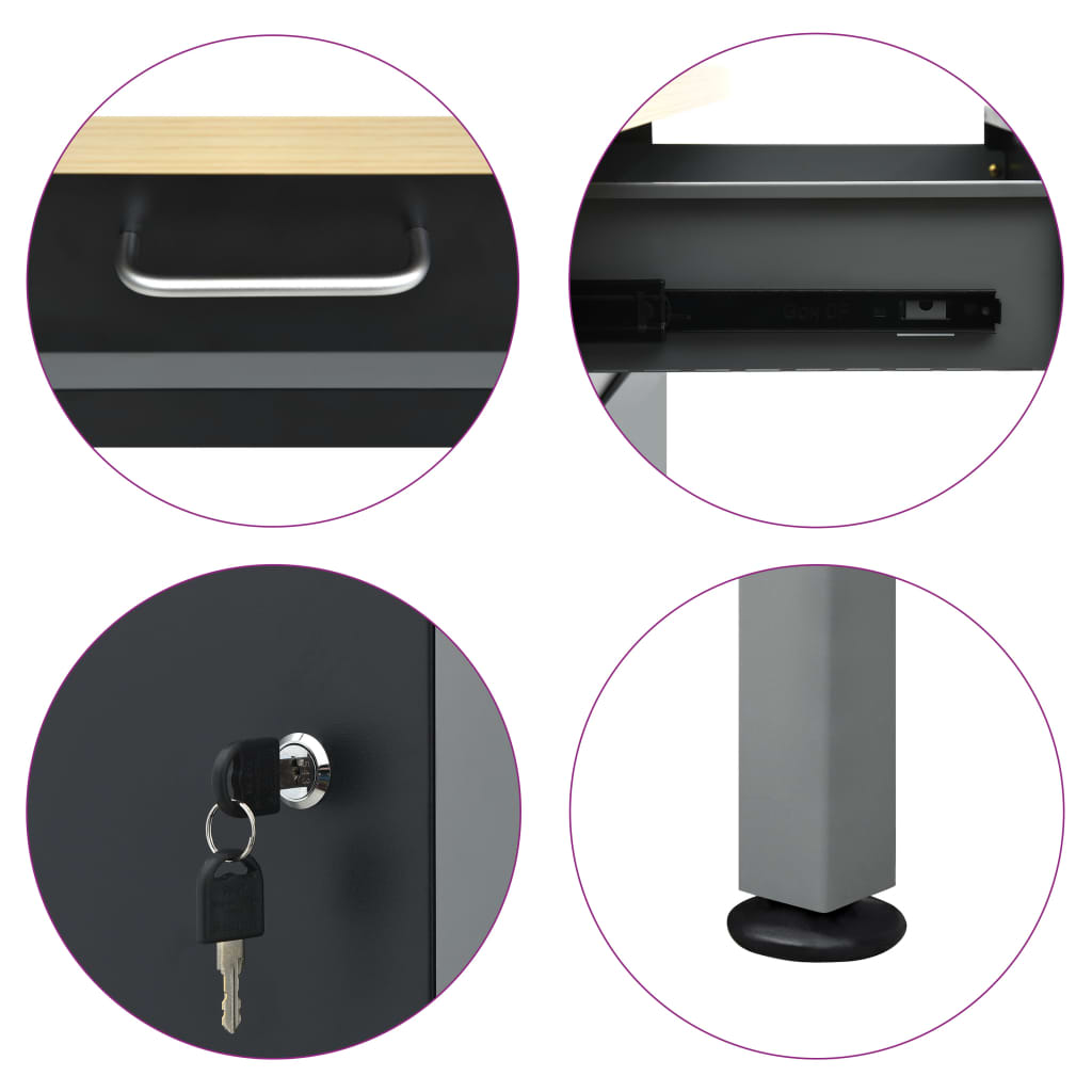 Den store og solide bordplaten gir en stabil plattform for alle slags reparasjonsarbeid. Arbeidsbenken har 6 skuffer, noe som sikrer at du kan organisere verktøyene, delene og tilbehøret som skruer, spiker og limbånd godt. Alle skuffer er utstyrt med kulelagermekanisme for jevn glidning. Det er egnede rom for større verktøy og 2 skap med låsbare dører, som har god plass til bor, kabeltrommer og kverner.