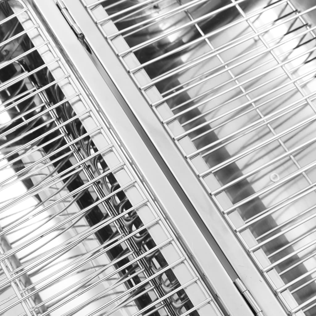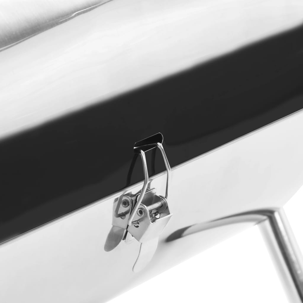 Denne campinggrillen i rustfritt stål er utstyrt med 2 forkrommede grillplater, og gir god plass til grilling av mat. Grilling er mulig med åpent eller lukket lokk. Den bærbare grillen er laget av rustfast rustfritt stål med polert overflate og er lett å rengjøre etter bruk. Det praktiske håndtaket gjør den enkel å transportere.