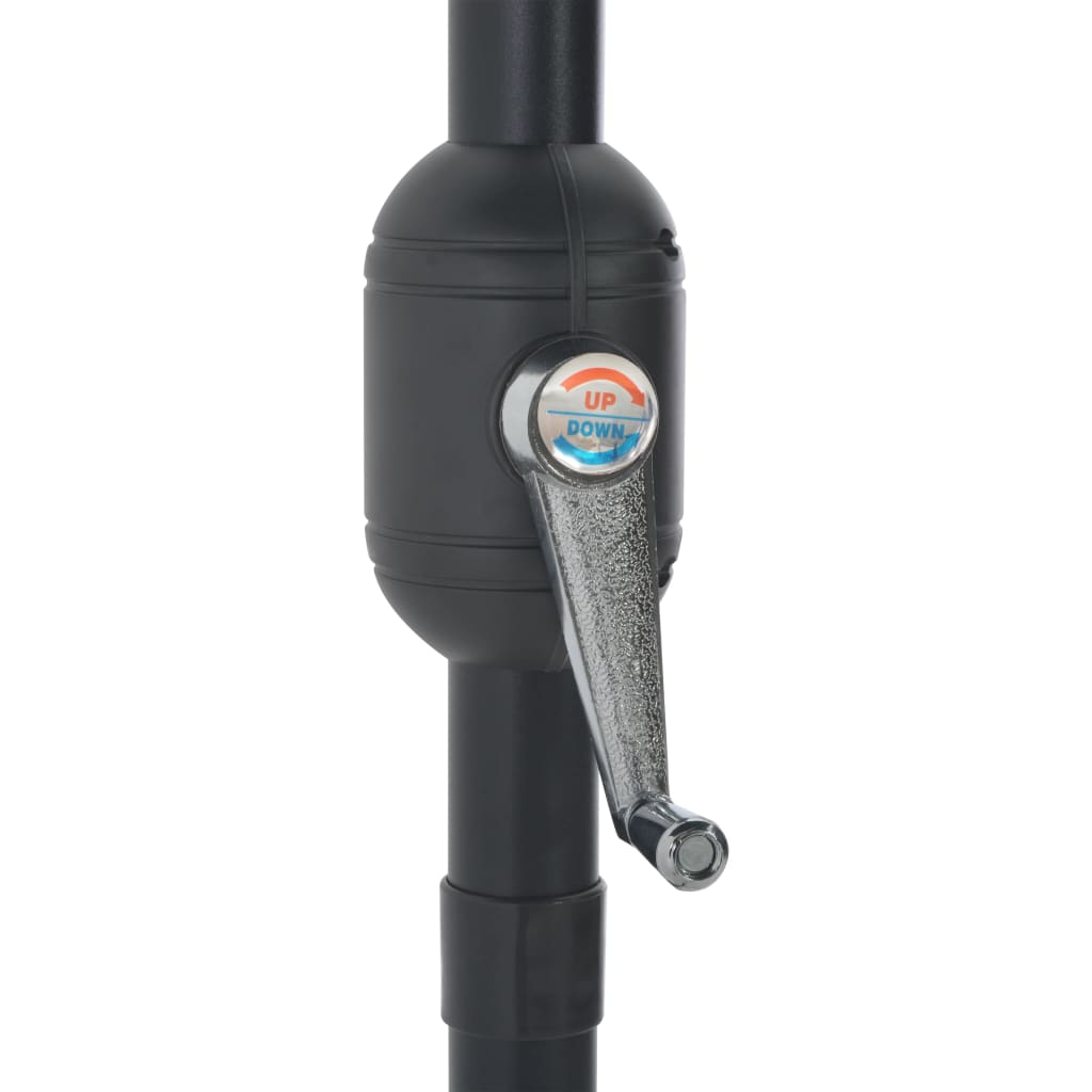 Parasolltrekket er laget av UV-beskyttende og anti-falmende polyester, og gir optimal beskyttelse mot solen. Det er lett å rengjøre. Med en stang på 38 mm i diameter kan parasollen monteres på stativ eller i midten av bord med hull. Den halvrunde formen øker også parasollens unike sjarm. Den sterke aluminiumsstangen, sammen med de 5 robuste stålspilene, gjør parasollen veldig stabil og holdbar. Hageparasollen kan lett åpnes og lukkes takket være sveivemekanismen.