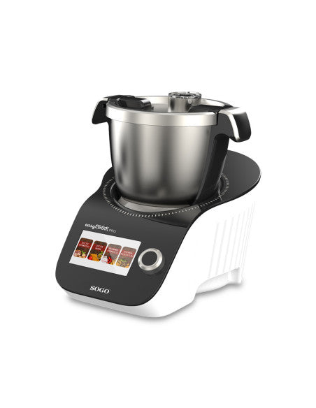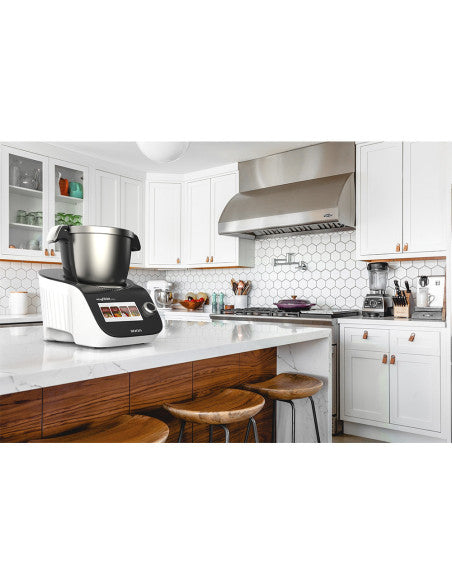 Du kan programmere denne multifunksjonsfoodprosessoren til å tilberede mer enn 100 trinnvise guidede oppskrifter; En nyttig funksjon når du ikke har erfaring på kjøkkenet, da den veileder deg om gram som skal brukes i hver ingrediens og med tilberedningstidene. Og du kan også programmere den i manuell tilberedningsmodus, i tilfelle du vil tilberede en oppskrift som ikke inkluderer roboten, må du bare legge inn kokedataene.
