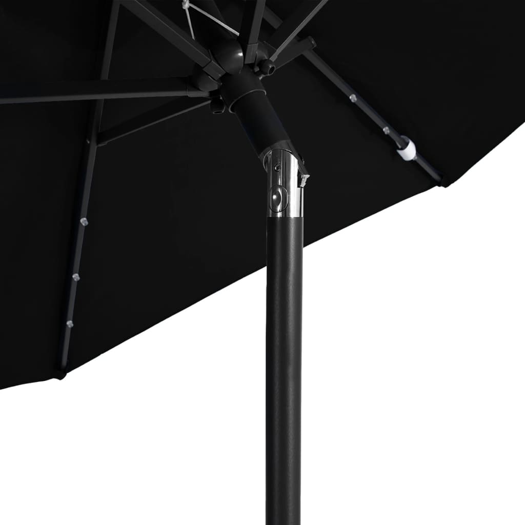 Hageparasoll med LED og stålstang svart 225x225x212 cm