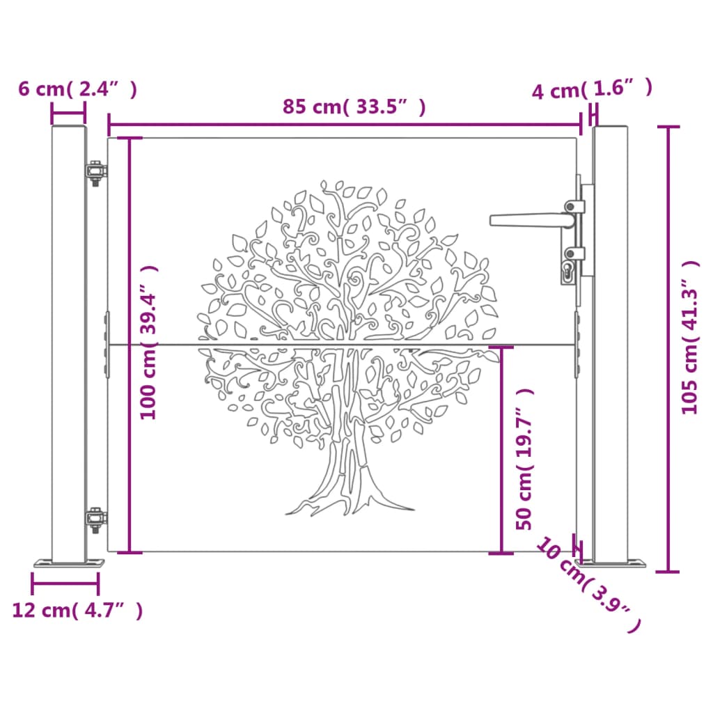 - Holdbart materiale: Denne metallporten er laget av cortenstål. Cortenstål er korrosivt i sin natur. Det utvikler et rustent beskyttende lag mot korrosjon når den først utsettes for atmosfæriske forhold. Dermed trenger du ikke å male det. Dette kan hjelpe deg med å spare på vedlikeholds- og reparasjonskostnader. Den karakteristiske brunfargen på cortenstålet vil garantert være et blikkfang. Endelig er forhåndsrustet stål eksepsjonelt holdbart og vil tåle tidens tann.