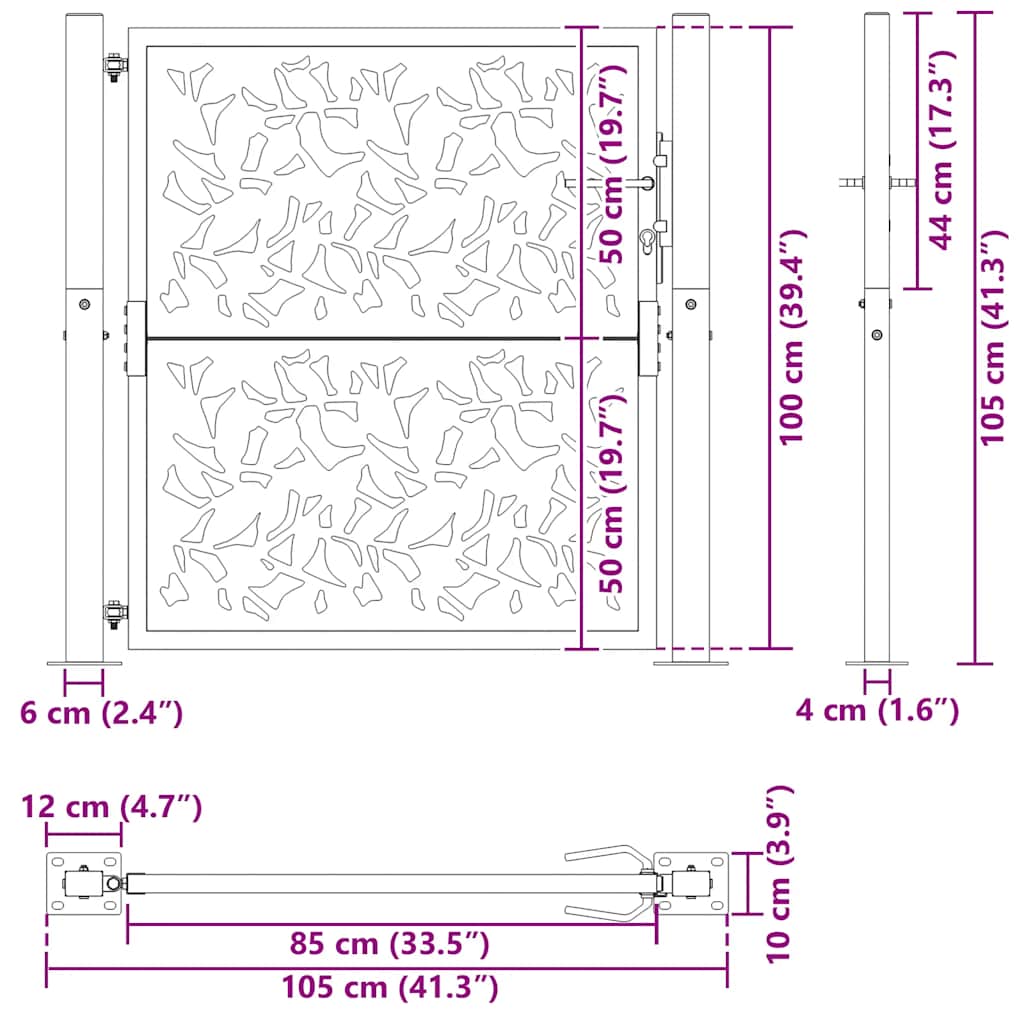 Hageport 105x105 cm oksidert stål bladdesign