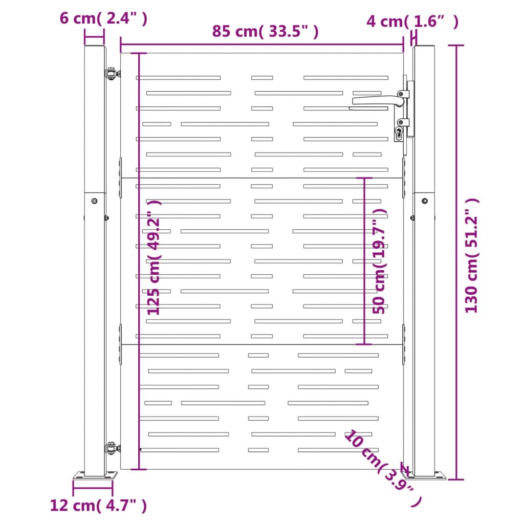 - Holdbart materiale: Denne metallporten er laget av cortenstål. Cortenstål er korrosivt i sin natur. Det utvikler et rustent beskyttende lag mot korrosjon når den først utsettes for atmosfæriske forhold. Dermed trenger du ikke å male det. Dette kan hjelpe deg med å spare på vedlikeholds- og reparasjonskostnader. Den karakteristiske brunfargen på cortenstålet vil garantert være et blikkfang. Endelig er forhåndsrustet stål eksepsjonelt holdbart og vil tåle tidens tann.